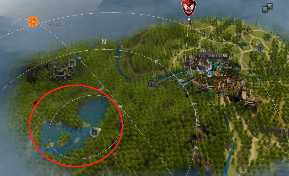 L’area nel cerchio rosso, ad ovest di Calpheon, è Catfishman Camp, un ottimo luogo per guadagnare silver grindando