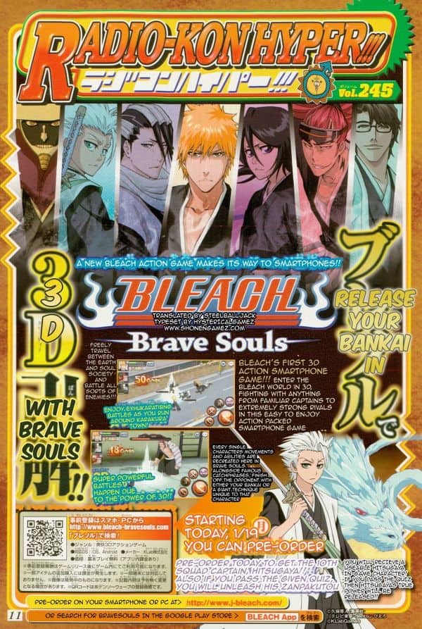 Se preordinate il gioco avrete la possibilità di ricevere, come bonus, il personaggio giocabile del Capitano Hitsugaya e, al completamento di un quiz, potrete addirittura sbloccare il Bankai della sua Zampakuto.
