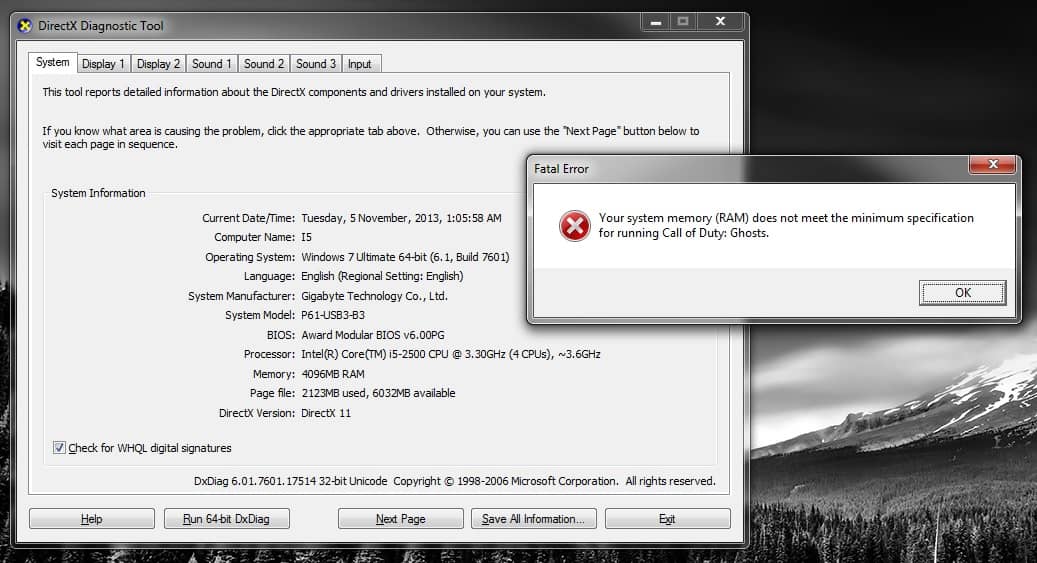 E ora, in effetti, CoD neppure si avvia se non riconosce 6 GB nel sistema.
