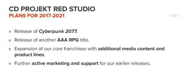Per il 2017 invece è previsto l’attesissimo Cyberpunk 2077 e, udite udite, un altro RPG tripla A entro il 2021. Che si tratti del quarto capitolo della saga di Geralt di Rivia? Oppure di una IP nuova di zecca? Staremo a vedere, nel frattempo, però, non possiamo che fare i complimenti, ancora una volta, a CD Projekt RED.