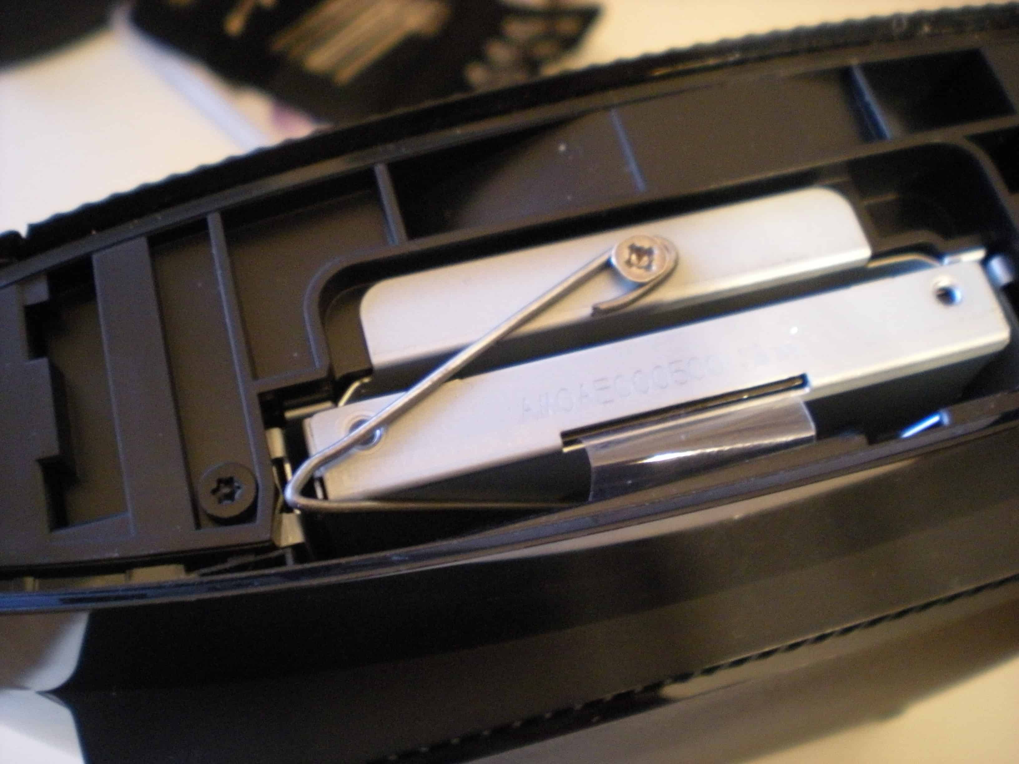 Per chi si sentisse più intraprendente, è possibile fare a meno anche del caddy venduto da Sony, e installare il disco fisso in maniera artigianale. È molto semplice e i modi per farlo si sprecano. Quel che vi serve per la modifica che proponiamo, oltre all’hard disk, è del filo di ferro resistente o una graffetta spessa da ufficio (l’importante è che il metallo sia duro e non facilmente malleabile), e consigliamo inoltre l’utilizzo di una slitta per hard disk da 2.5”, di quelle utilizzate per alloggiare gli stessi nei laptop, per proteggere il circuito stampato e i chip. Nel nostro caso, utilizzeremo hard disk e relativa slitta prelevati da un Acer Aspire One.