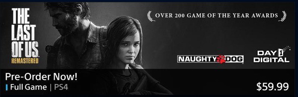 Ormai è praticamente ufficiale: The Last of Us approderà anche su next gen, con la versione Remastered per PS4. È già possibile preordinare il gioco, infatti, dal PlayStation Store americano, dove è apparso questo banner pubblicitario: