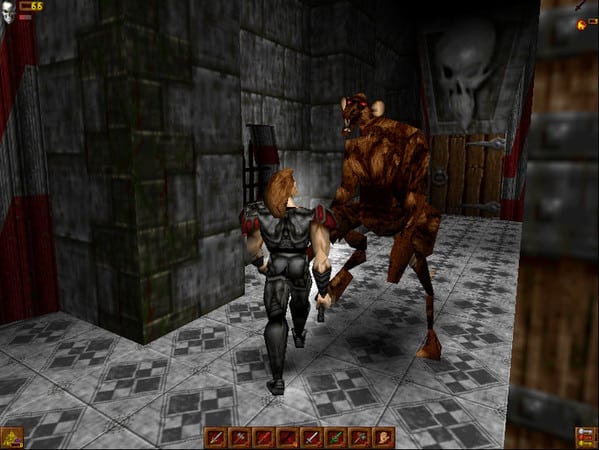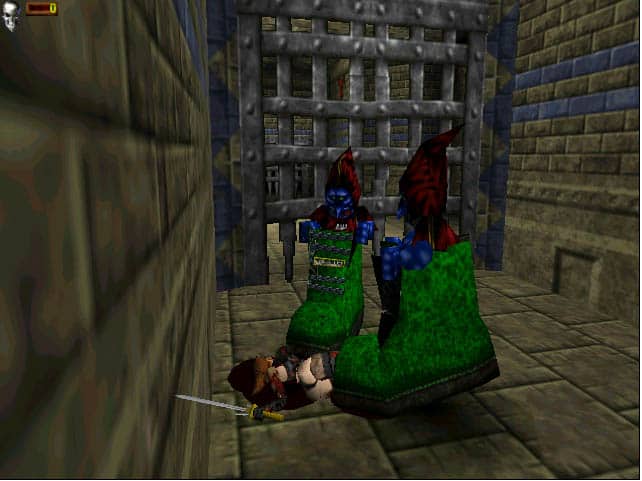 Deathtrap Dungeon è uno dei primi esempi semi-competenti di Action-Adventure 3D in terza persona con combattimenti all’arma bianca. Essendo stato realizzato in contemporanea addirittura a Die by the Sword e un’eternità prima di Gothic o Blade of Darkness, ha la scusante di avere avuto come sole possibili fonti di ispirazione Tomb Raider (che non è basato su scontri all’arma bianca) e pochi altri titoli estremamente grezzi (per non dire tendenti all’ingiocabile) come Highlander: The Last of the MccLeods o Ecstatica (tecnicamente cloni di Alone in the Dark, ma pesantemente basati sul combattimento).