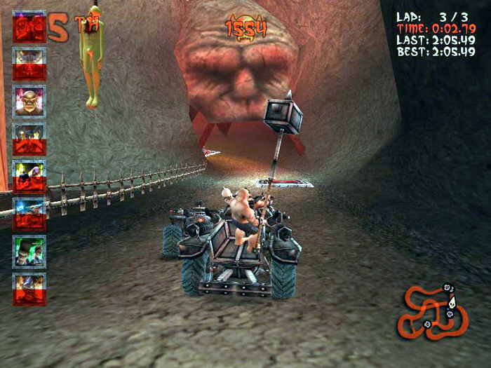 Una delle cose che amo di più dell’epoca PS1 e PS2, e che oggi è praticamente sparita, è che alcuni giochi non avevano timore di presentarsi come trashate ignoranti; te lo sbattevano in faccia, quasi se ne vantavano. Basta guardare la copertuna di Earache: Extreme Metal Racing e ricollegarla al titolo, e viene inevitabilmente da pensare…