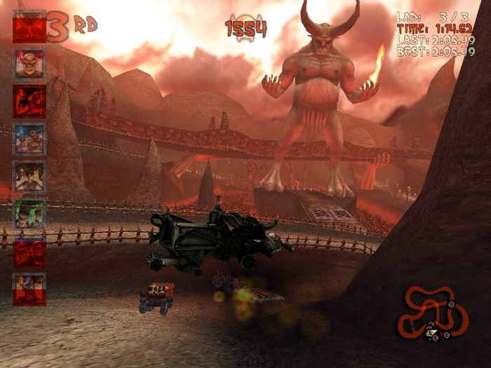 - Death Race: è sostanzialmente Death Match, ma su circuito e potenzialmente con un paio di macchine in più (ma non si può giocare in due giocatori umani, per qualsiasi sia il motivo). Visto che conta solo ed unicamente uccidere gli altri non ne ho capito molto il senso.
