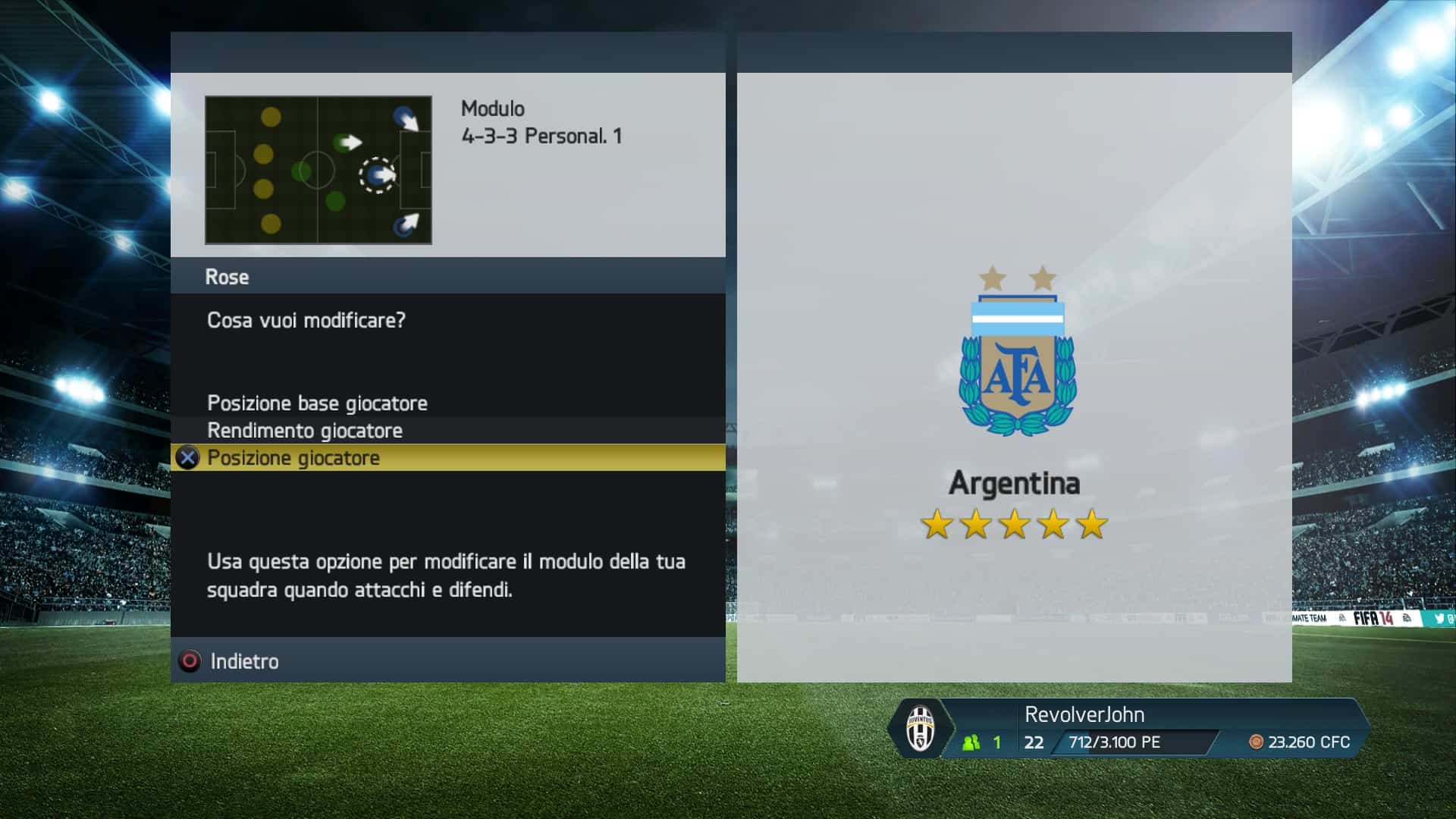 L’argentina è una delle nazionali più forti di FIFA 14, anche se, come tutti sappiamo, non è un team particolarmente equilibrato. Il punto debole della rosa, tuttavia, non è il reparto difensivo, come in molti pensano. Certo, non si tratta della difesa migliore del gioco, tuttavia non è neanche così male; il vero difetto dell’Argentina, a mio avviso, è il centrocampo, che non offre dei centrocampisti centrali davvero validi e allo stesso livello del resto della squadra. Il punto forte della nazionale sudamericana, invece, è senza dubbio l’attacco, tra cui figurano nomi come Messi e Aguero, giusto per fare due esempi. Il problema, però, è che Messi, in FIFA 14, è dannatamente difficile da utilizzare (al contrario di giocatori come Cristiano Ronaldo, ad esempio), e per riuscire a capire come impiegarlo al meglio mi ci è voluto davvero parecchio, ma alla fine ci sono decisamente riuscito. Allo stesso modo, ho valorizzato i punti di forza di quasi ogni elemento della rosa e ho praticamente annullato i punti deboli.