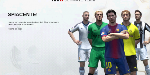 I numerosi videogiocatori che hanno provato a gestire la loro squadra tra il 5 e il 6 dicembre si sono trovati davanti alla scritta Si è verificato un errore durante la connessione a FIFA Ultimate Team. Ora tornerai al menù principale di FIFA13. oppure I server non sono al momento disponibili. Stiamo lavorando per migliorarne la funzionalità. Ritorna più tardi.