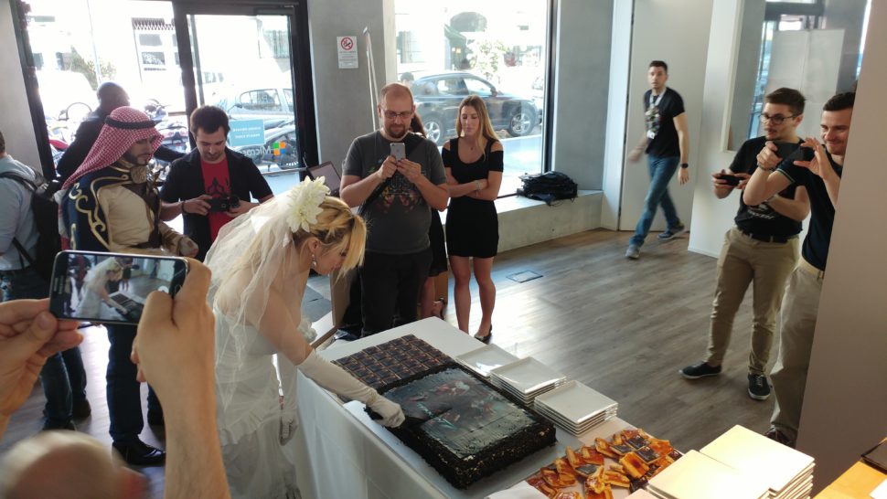 L’aria di festa si è respirata fin dai primi istanti e tutti i presenti i sala non vedevano l’ora di prendersi a mazzate nelle arene del settimo Iron First. Come in ogni festa degna di questo nome, ci sono dei “rituali da seguire”, ovvero gli annunci dei padroni di casa: Microsoft, Samsung e Bandai Namco che, dopo una serie di discorsi e congratulazioni, sono passati ad uno dei momenti clou della festa: il taglio della torta “Tekkeniana” da parte della bellissima cosplayer di Nina Williams.