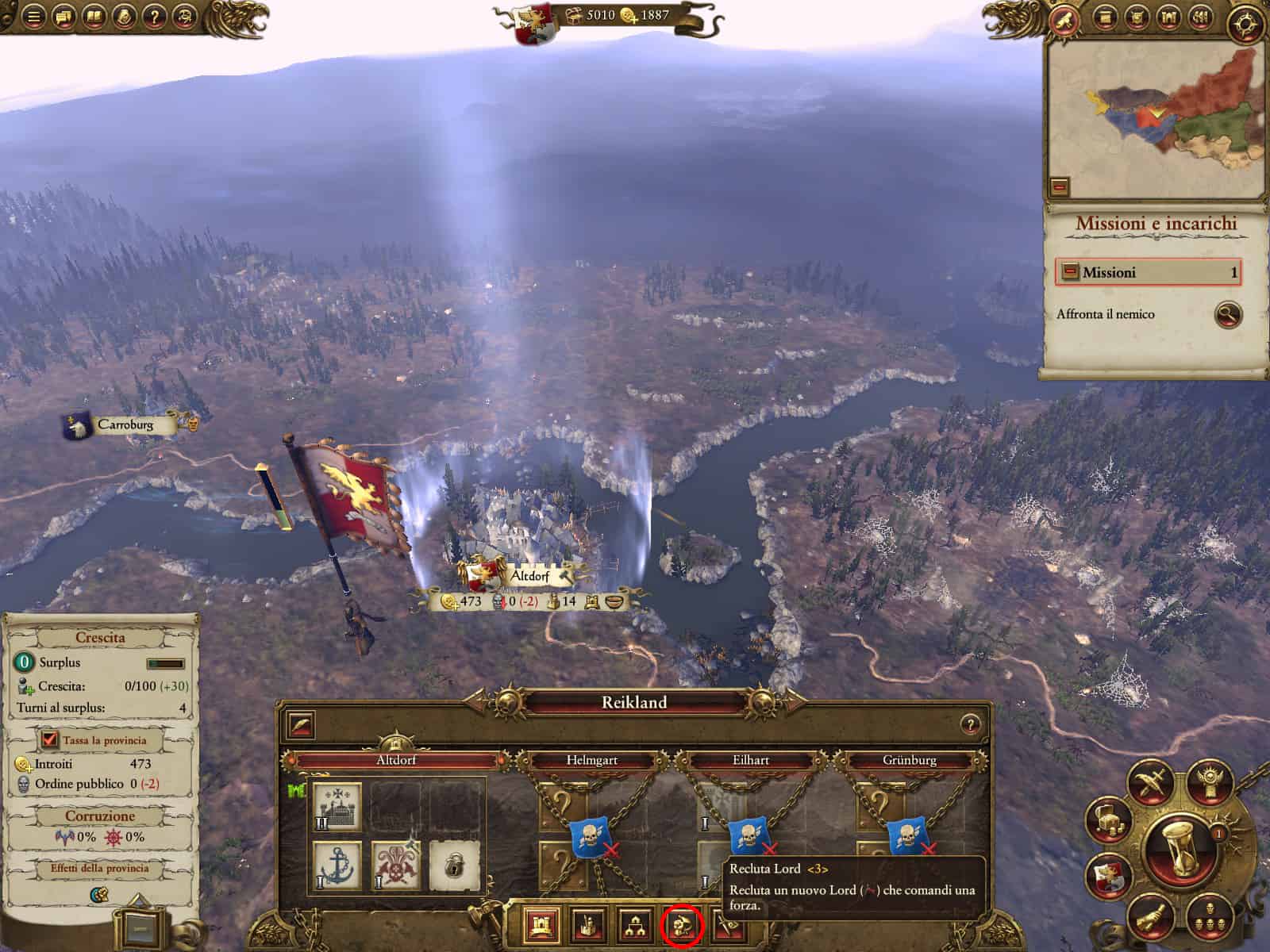 È possibile produrre nuove unità in alcuni modi diversi a seconda della vostra fazione, ma il metodo principale e disponibile per tutti è il Reclutamento. Ogni volta che un vostro esercito si trova su suolo appartenente alla vostra fazione, basta selezionarlo e premere il tasto “Recluta unità” in basso nel pannello per ordinare la creazione di nuove truppe. Quali e quante unità è possibile reclutare dipende dagli edifici presenti nella Provincia in cui si trova l’esercito.