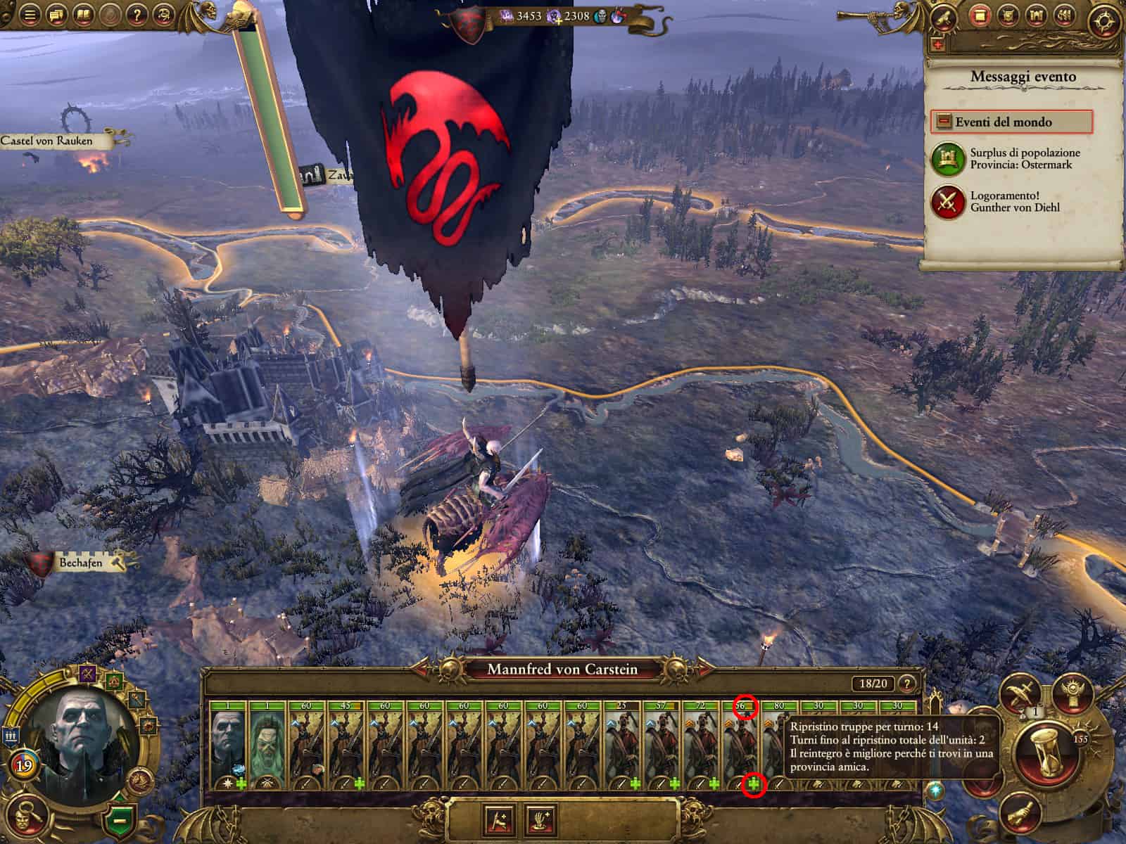 Il simbolo del più indica che l’unità è in reintegro, e la porzione gialla della barra della vita dà un’anteprima di quanta salute sarà reintegrata. Fermando il mouse sul simbolo del reintegro avrete un prospetto più completo dell’operazione.