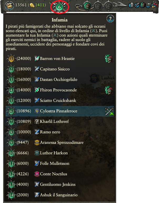 Ad ogni fazione della Costa dei Vampiri viene attribuito un punteggio di infamia influenzato da diverse azioni compiute nel corso della campagna (fra le quali radere al suolo insediamenti e uccidere prigionieri), e secondo questo è collocata in una apposita classifica.