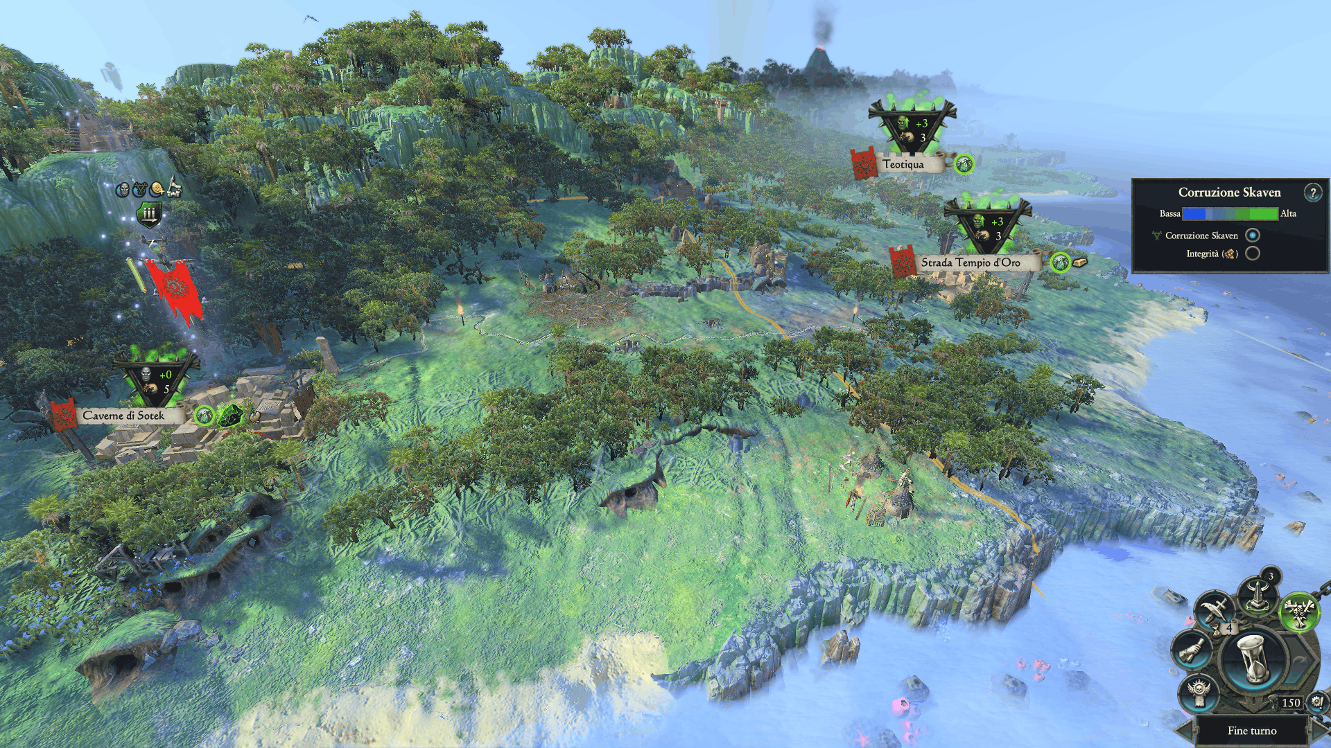 Ogni insediamento appartenente ad una fazione Skaven apparirà, agli occhi delle altre fazioni, come una rovina senza padrone. La presenza della città vera e propria si paleserà solo dopo un’esplorazione di un eroe o un tentativo di colonizzazione di un lord. In questo ultimo caso, si aprirà immediatamente il pannello pre-battaglia con le opzioni di ingaggio, come se si avesse dato ordine di attaccare un normale insediamento di un’altra fazione. Se si deciderà di attaccare, verrà dichiarato lo stato di guerra tra le due fazioni (qualora questo non sussistesse già); in caso di ritirata la guerra non sarà dichiarata.