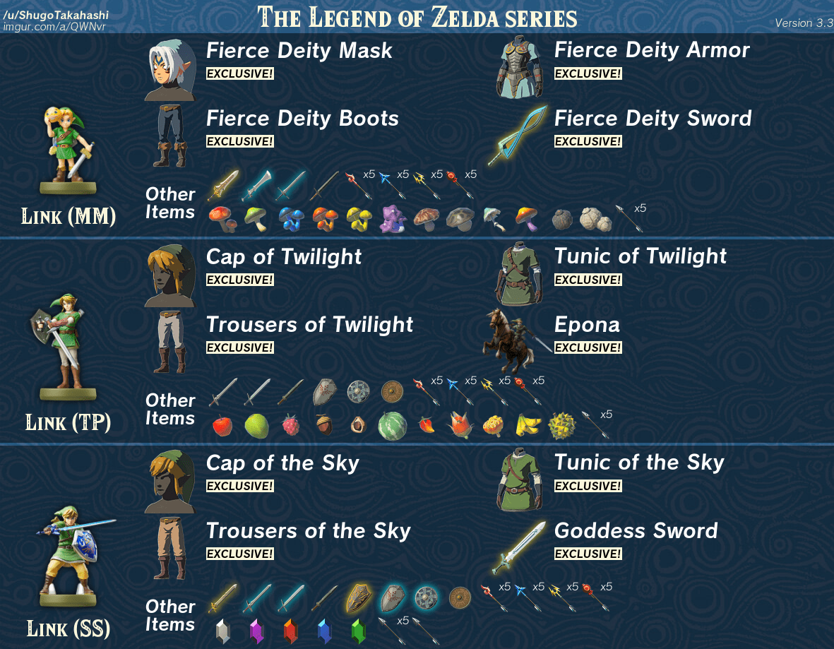 - tunica dell’eroe del cielo (solo con questo amiibo)