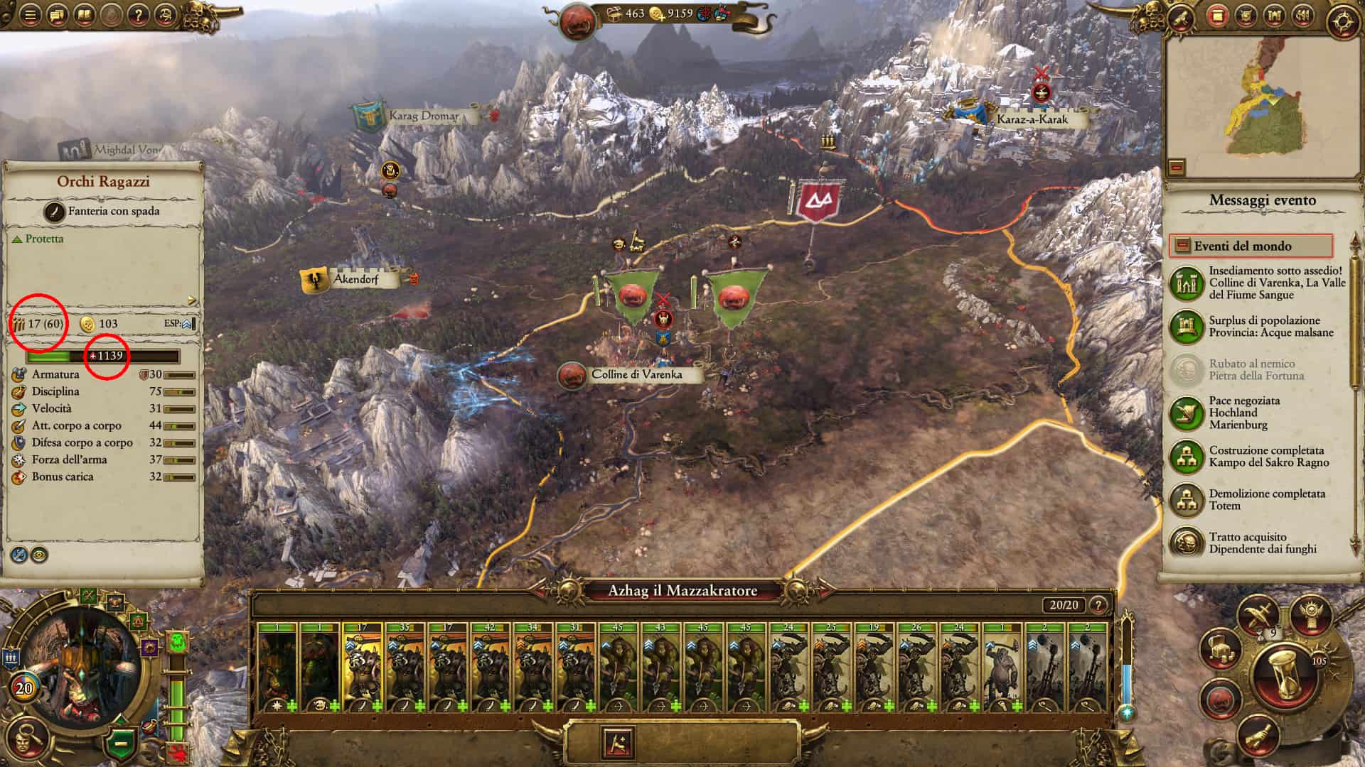 A sinistra il numero di membri attuali dell’unità e il numero massimo possibile, sotto la salute attuale dell’unità.