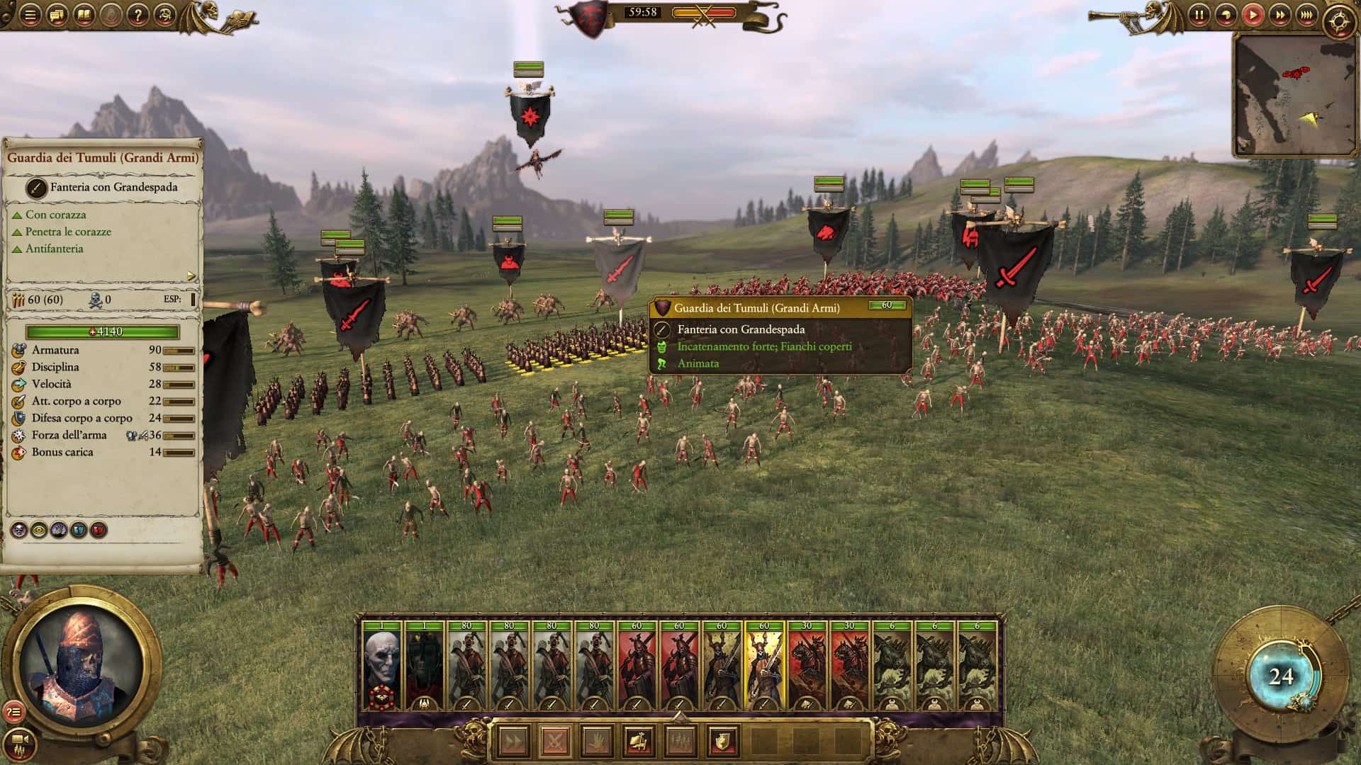 Per tutta la durata dell’effetto, il numero indicato nel Bonus carica viene sommato all’Attacco corpo a corpo e alla Forza dell’arma dell’unità. Il Bonus di carica non viene applicato quando si attacca sul fronte un’unità con l’Abilità “Difesa contro le cariche” per la tipologia di unità che sta caricando.