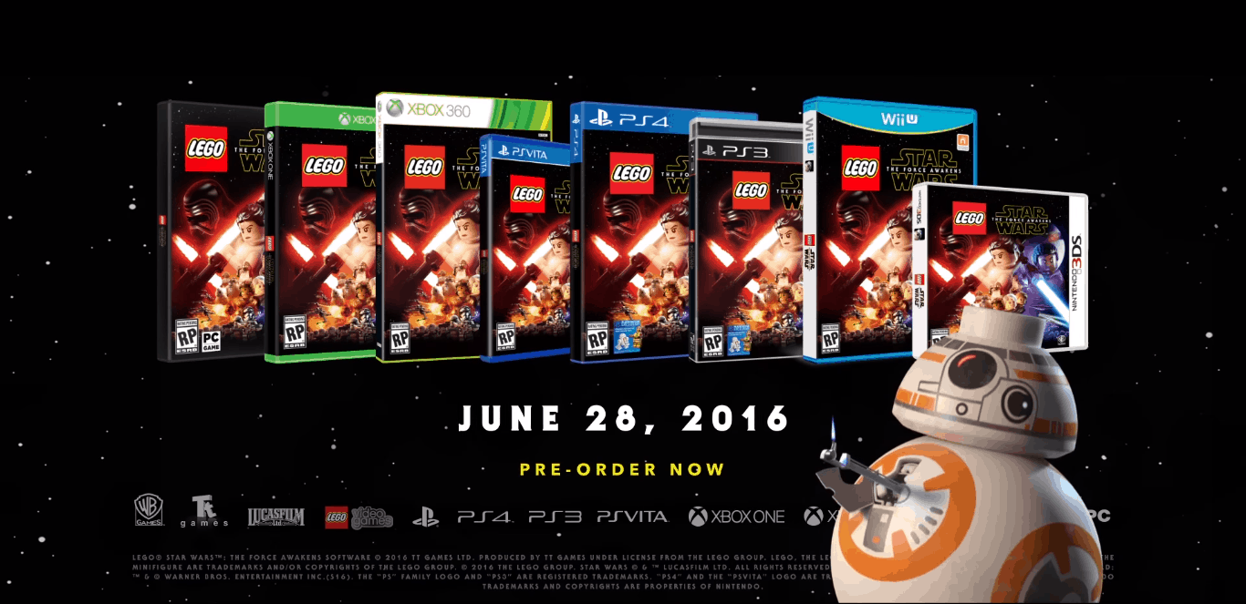LEGO Star Wars: The Force Awakens sarà disponibile per PC, Xbox One, Xbox 360, PS Vita, PlayStation 4, PlayStation 3, Wii U e Nintendo 3DS il prossimo 28 giugno, con un’edizione deluxe disponibile per PS4 e Xbox One che includerà un esclusivo personaggio LEGO di Finn e un season pass per i DLC. Le versioni PS3 e PS4 avranno dei contenuti scaricabili esclusivi.
