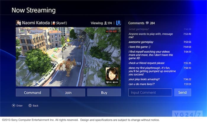Dalle immagini si può notare la semplicità con cui sarà possibile registrare filmati di gameplay e condividerli con il mondo; il restyling dei menù (che ora somigliano vagamente a quelli del PS Store) e il fatto che sarà possibile vedere e commentare i video anche da apparecchiature mobili!