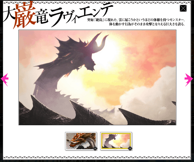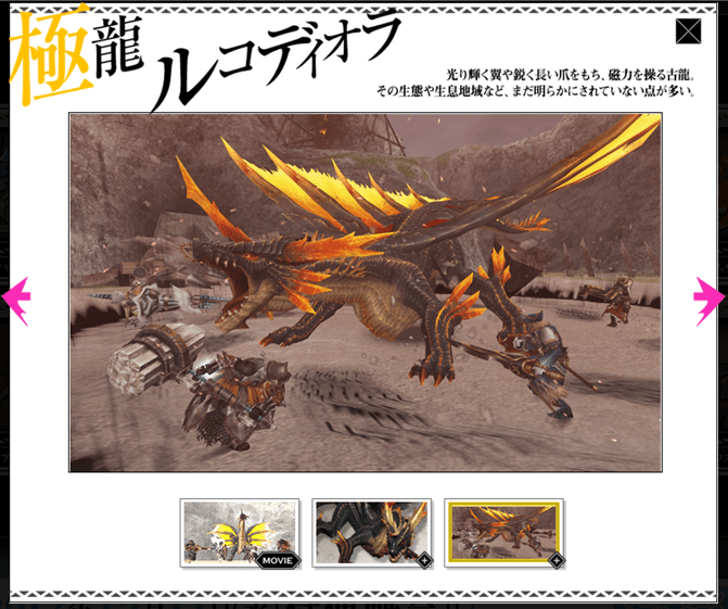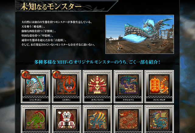 La pagina, completamente in giapponese (MHFG è previsto solo per il Paese del Sol Levante, al momento), è piena zeppa di informazioni sul nuovo titolo. Fortunatamente, una gran quantità di immagini e video, alcuni nuovi di zecca, rendono piacevole la navigazione anche per chi non conosce la lingua.
