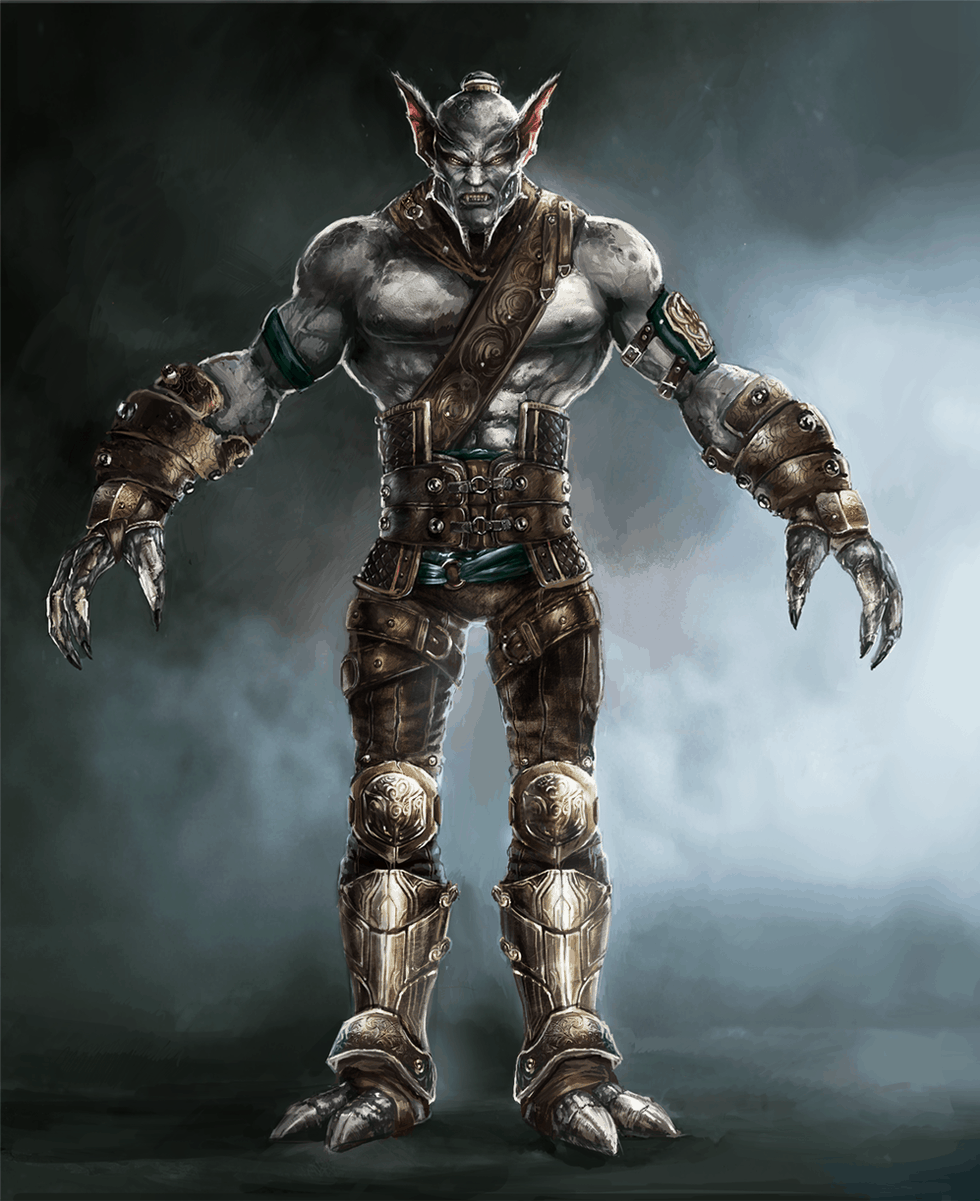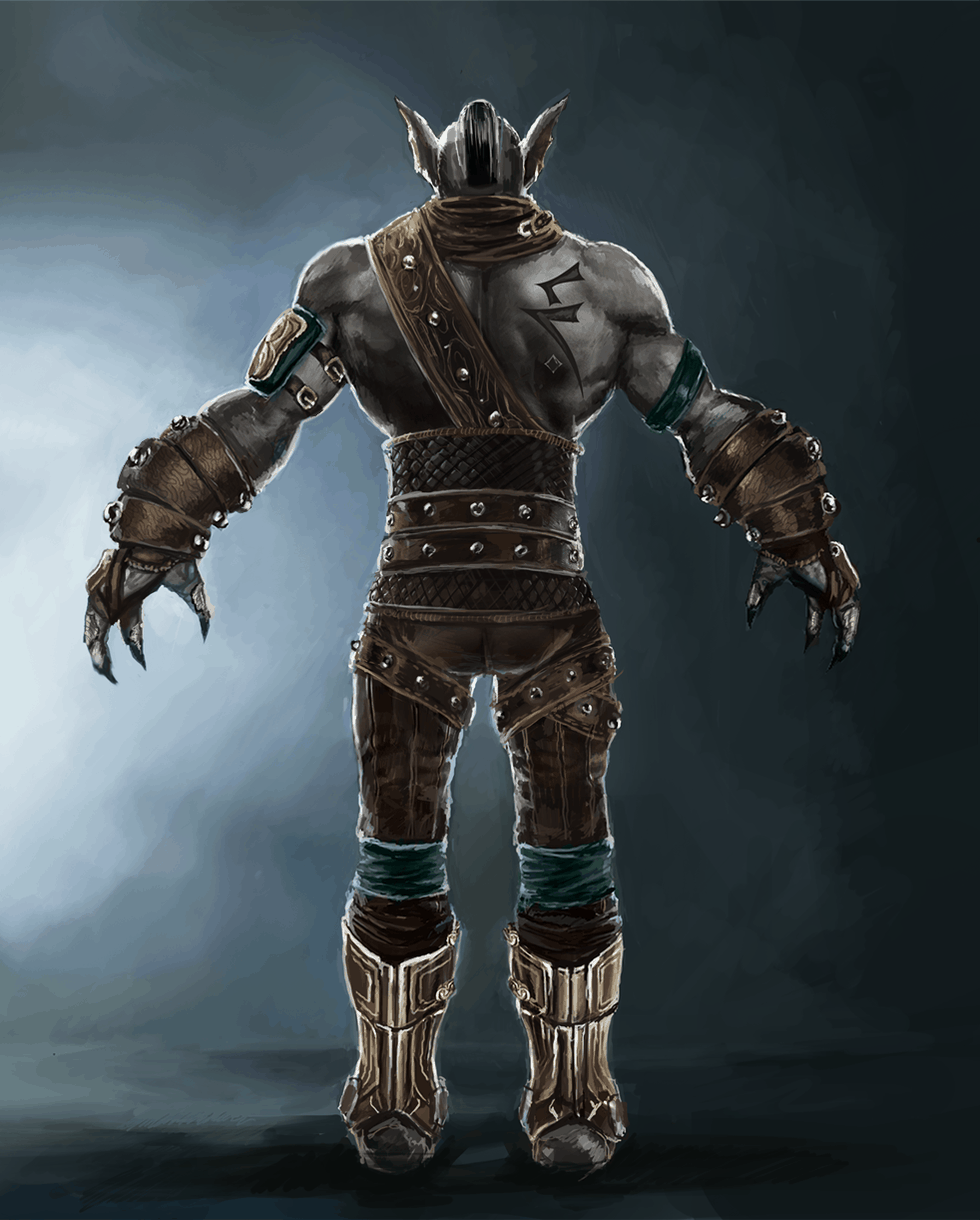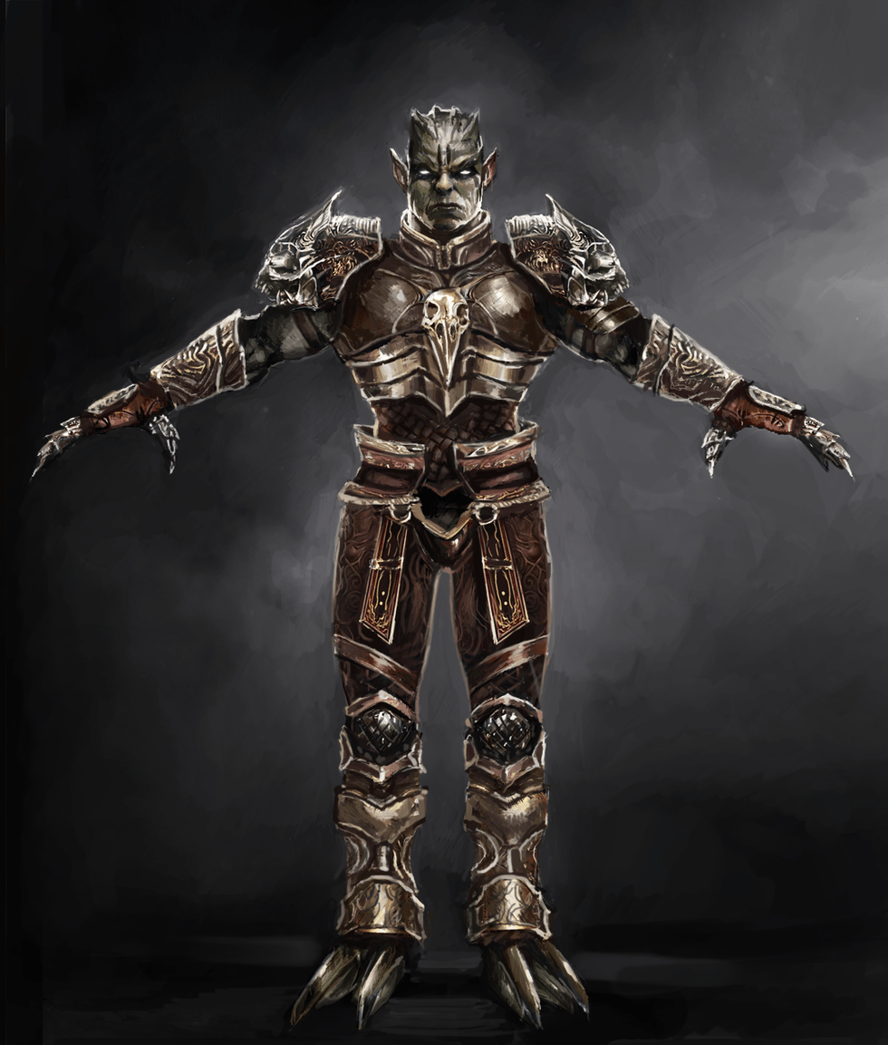 Per i Dumahim creato dei paralleli con le decorazioni pan-asiatiche dell’armatura del signore del loro Clan, Dumah. Gli osservatori più attenti noteranno piccoli dettagli quali i volti sugli spallacci e il teschio di corvo in metallo al centro del torace. Le loro mani hanno degli unghioni metallici costruiti come rivestimento degli artigli per farli durare più a lungo. I capelli e la forma della testa suggeriscono quali mostruosità diventeranno.