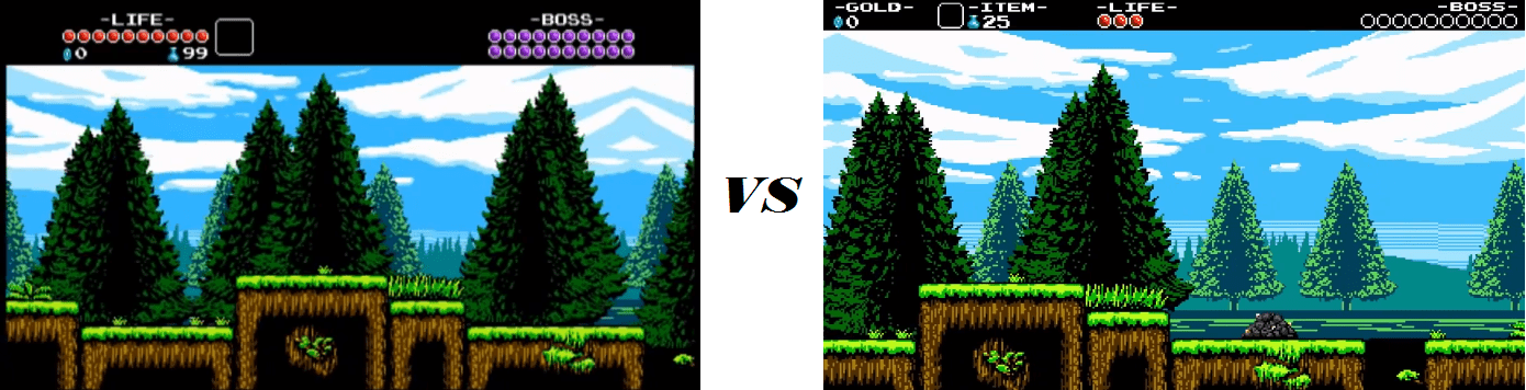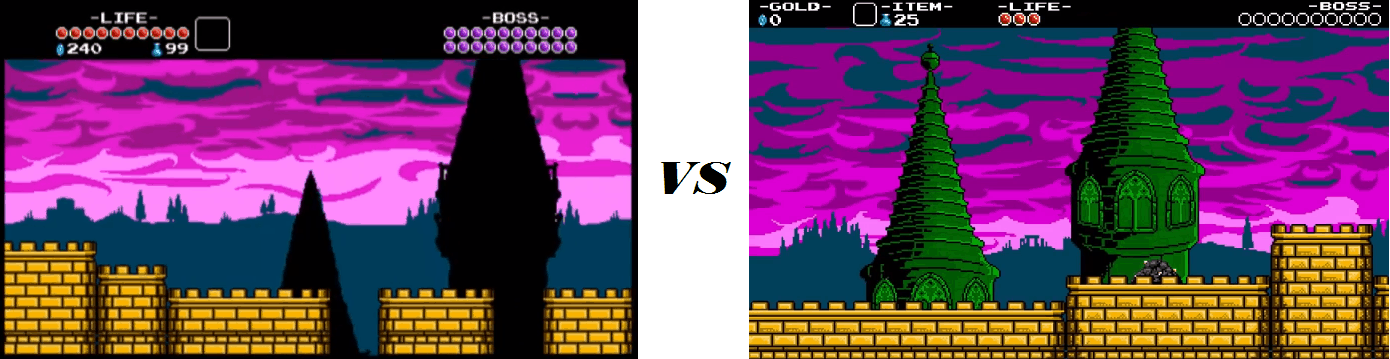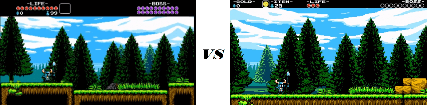 Oltre agli indubbi miglioramenti portati dall’alta definizione, possiamo notare in queste prime immagini l’aggiunta di una nuova montagnola di terra a destra e soprattutto una nuova impostazione per quanto riguarda le informazioni sulla vita del nostro PALAdino (scusate, non siamo riusciti a trattenerci), ora apparentemente ridottasi a sole tre unità, la quantità d’oro raccolta, l’oggetto in uso e la vita del boss di fine livello (che presumibilmente ora si riempirà solo quando questo comparirà dinanzi al giocatore. Anche se, a dire la verità ciò accadeva sin dal primo trailer: probabilmente si trattava solamente di una svista, ora corretta).