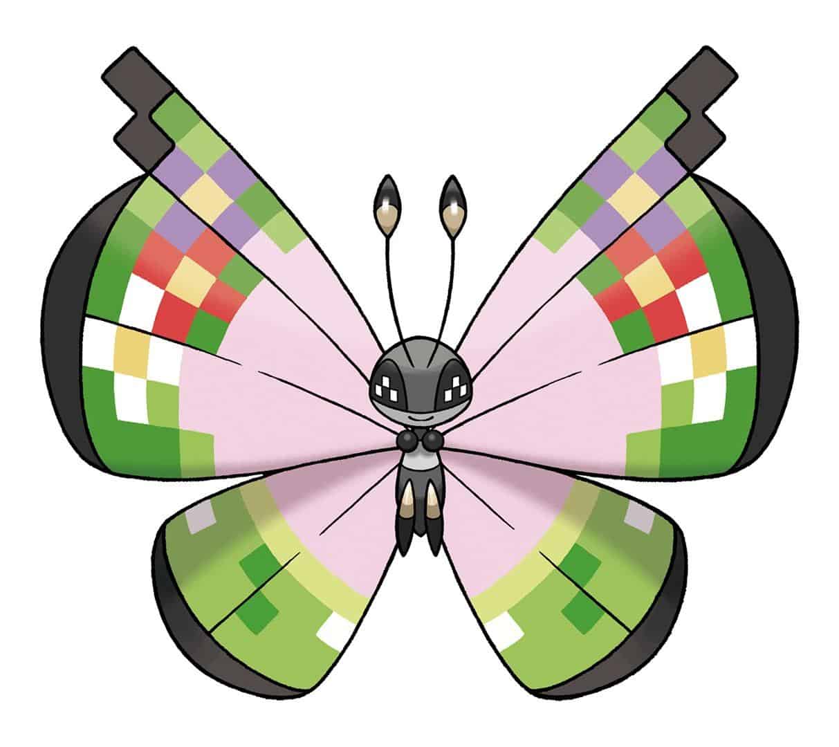 Vivillon è un Pokemon insetto/volante apparso di recente (2013) in Pokemon X e Pokemon Y. Le trame sulle sue ali sono legate alla posizione geografica del giocatore. Proprio per questo, è molto scambiato soprattutto da chi ama collezionare tutte le diverse colorazioni dei Pokemon.