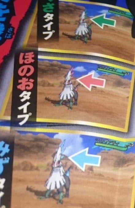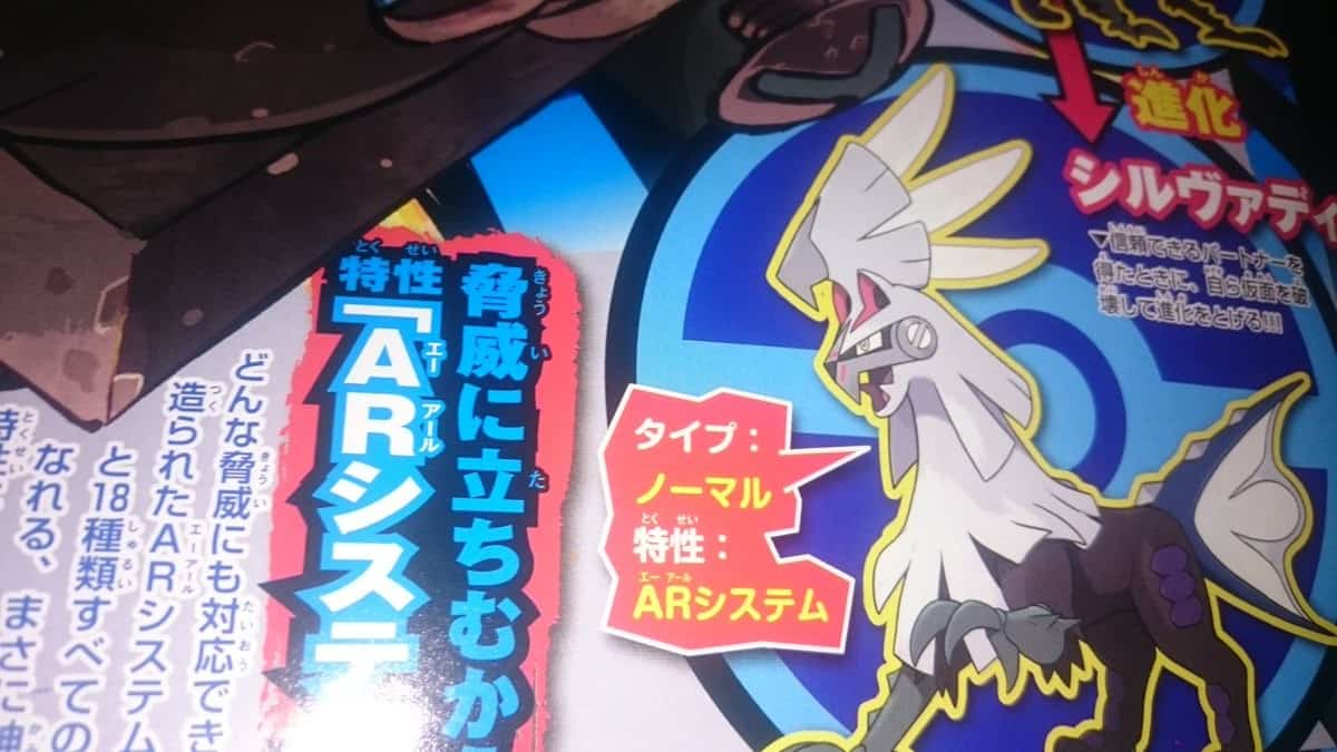 Tornando a Type: Null, la sua evoluzione manterrà il tipo Normale, ma sarà in grado, tenendo uno strumento speciale (chiamato Memory) di cambiarlo in uno qualunque degli altri 17 grazie alla sua abilità, AR System. Non si sa ancora se si tratterà di uno strumento unico o di più strumenti, un po’ come accade già per i moduli di Genesect e, soprattutto, per le lastre di Arceus (con cui Silvadi sembra avere anche diverse somiglianze a livello estetico. A seconda del tipo che Silvadi assumerà, i suoi occhi, la criniera e la coda cambieranno di colore. Sarà infine in possesso di un nuovo attacco, chiamato Multi Attack, che avrà un tipo diverso a seconda dell’oggetto tenuto (e che quindi gli garantirà sempre uno STAB).