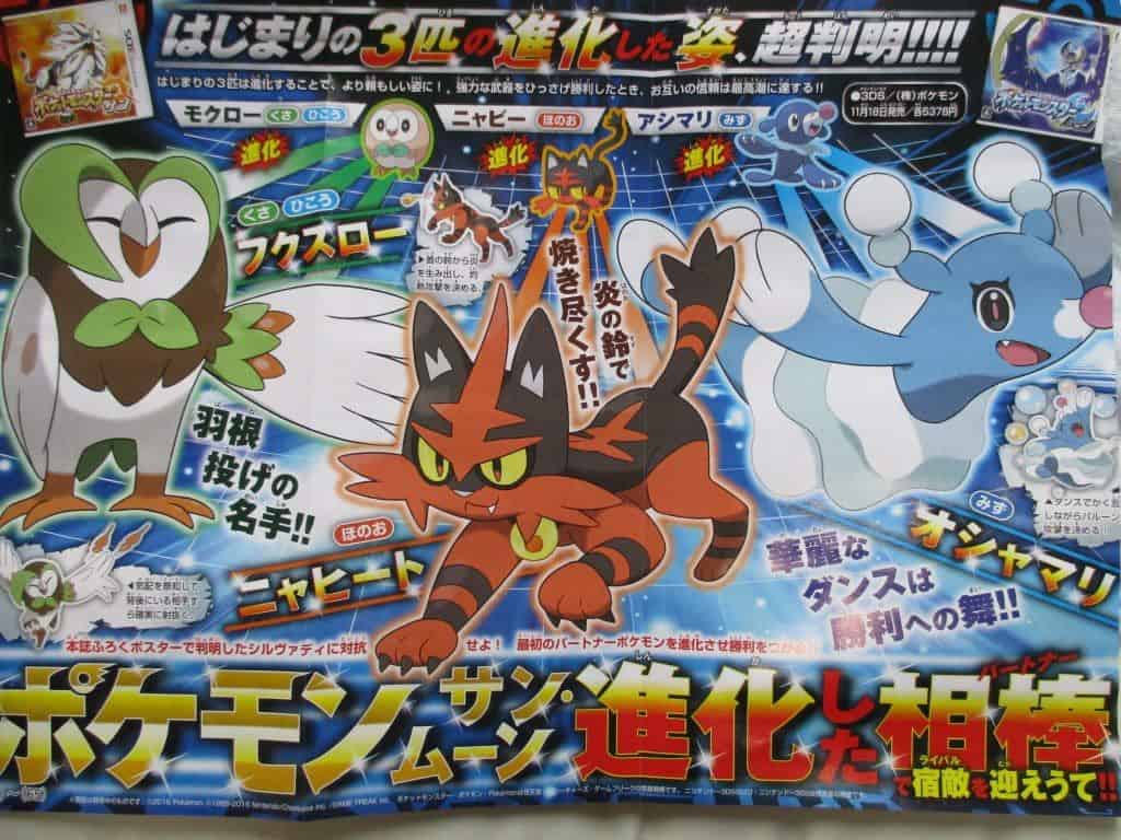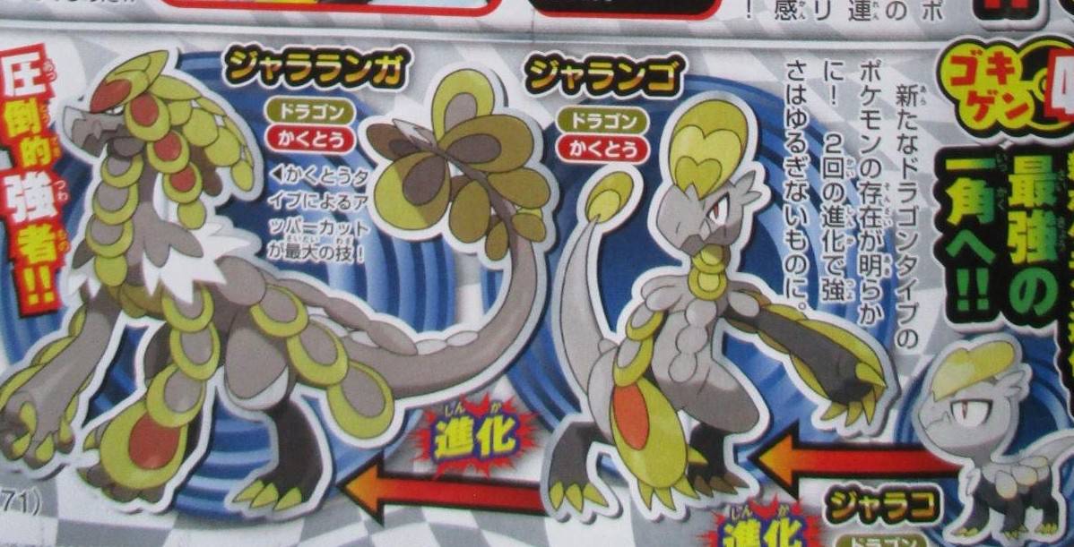 Oltre alle prime immagini delle evoluzioni di Jangmo-o (che in Giappone si chiameranno Jarango e Jararanga) e a quella di Type: Null (Silvadi), che potete vedere qui sopra, ci sono anche delle nuove illustrazioni per Dartrix, Torracat e Brionne. Queste parrebbero suggerire che i leak delle evoluzioni finali non siano poi tanto distanti dalla realtà: Dartrix infatti sembra lanciare delle frecce di piume, mentre Torracat si alza sulle zampe posteriori per sferrare un attacco.