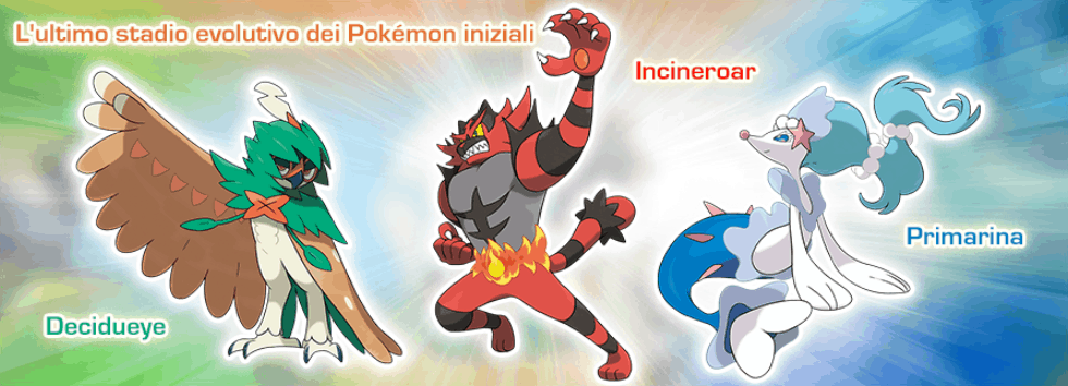 Come previsto, The Pokémon Company ha rivelato, nel trailer di oggi, le evoluzioni finali degli starter di Pokémon Sole e Luna, svelando i loro nomi occidentali. Ecco Decidueye, Incineroar e Primarina!