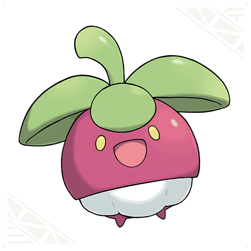 Il profumo che emana da tutto il suo corpo ha un effetto calmante sugli esseri umani e fa di Bounsweet uno dei Pokémon più amati della regione di Alola. Molte persone tengono un Bounsweet in casa perché renda profumata l’aria nelle stanze. Sfortunatamente, però, il suo aroma può anche attrarre Pokémon che vogliono inghiottirlo in un solo boccone.
