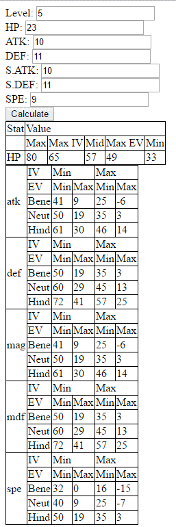 Un altro utente ha calcolato le statistiche dello stesso esemplare se avesse nature diverse: