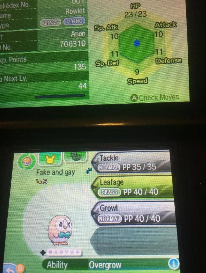 Partiamo subito dalla foto più interessante: le statistiche di Rowlet.