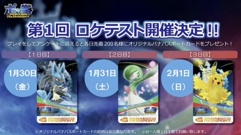 Verranno infine date delle carte speciali, le Passport cards, ai giocatori che compileranno un questionario. La carta di Lucario verrà distribuita il 30 gennaio, quella di Gardevoir il 31 e quella di Pikachu il 1° febbraio. Machamp verrà invece regalato al Japan Amusement Expo il 14 febbraio. Per Suicune non si hanno notizie (probabilmente sarà scappato in chissà quale angolo di Johto…).