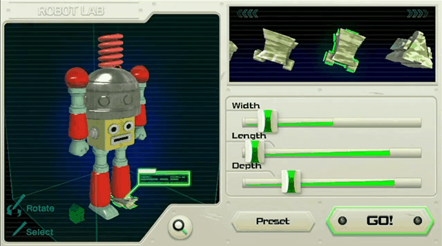 Lo scopo del gioco sarà costruire dei robot con pezzi a nostra scelta per poi utilizzarli in combattimento contro degli altri robot… senza sfracellarsi al suolo (più facile a dirsi che a farsi).