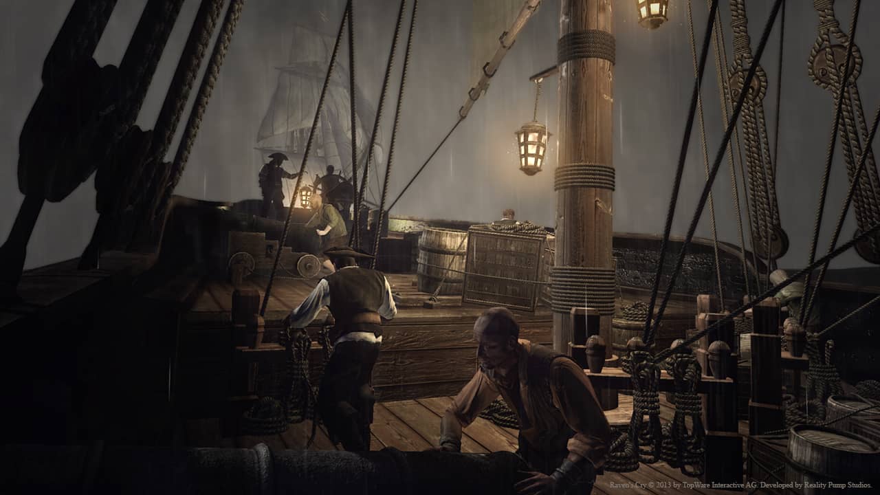 Per quanto riguarda l’attesissima data di rilascio, le fonti ufficiali attestano che Raven’s Cry sarà disponibile dal 14 ottobre 2014. A testimoniare che tutto fila liscio anche l’avvio del sito ufficiale del gioco che ci fa rifare gli occhi mostrando qualche immagine inedita e ci illustra storia e contenuti. A proposito di questi ultimi va sottolineata l’interessante ambizione del gioco che ci porterà a vestire i panni di Christopher Raven un uomo che si è dato alla pirateria per lenire le ferite del suo cupo passato. Le ambientazioni cercano di essere quanto più fedeli al periodo storico, sono cariche di riferimenti e mostrano un action RPG che potrebbe avere tutti i numeri per impressionare anche i videogiocatori più esigenti. Anche il gameplay sarà ricco, tra battaglie navali, combattimenti all’ultimo sangue ed un mondo vasto e complesso da esplorare e conoscere. In attesa di novità e sviluppi in merito a Raven’s Cry non ci resta che dire: Ahoy!