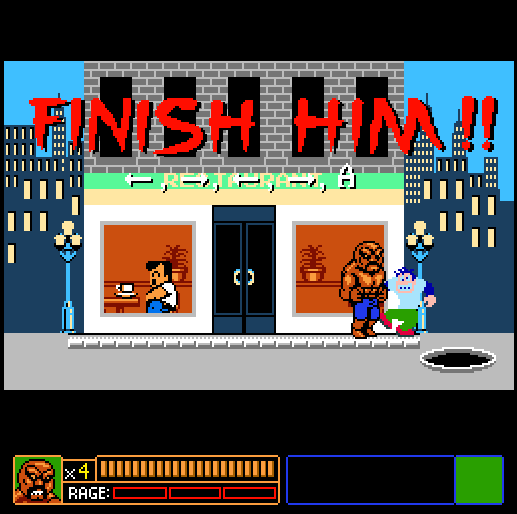 Ehm… Sì, se non altro per le sue colossali ottusità e voglia di menar le mani: ed ecco dunque che la scelta è ricaduta su Abobo. Vecchia conoscenza per chi è cresciuto a pane e Double Dragon, il nostro “eroe” (insomma…) si vede costretto a ripercorrere (letteralmente) i videogiochi che hanno fatto la storia della console Nintendo nel tentativo di salvare il suo figlioletto rapito (Aboboy per gli amici).