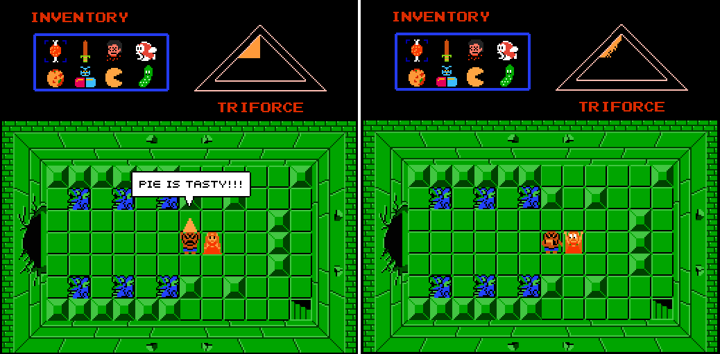 Conoscendo un pochino d’inglese, ci si può anche divertire a leggere i (pochi) dialoghi presenti, pure questi conditi da un senso dell’umorismo scoppiettante e un po’ sbilenco (come non ridere di fronte ad un Abobo che scambia la Triforza… per una fetta di torta?).
