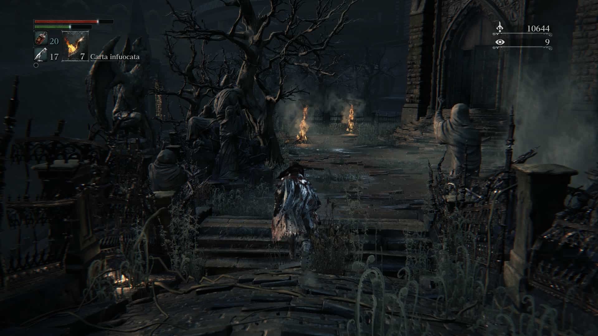 Come in Demon’s Souls, i checkpoint (ora rappresentati da delle lanterne) fanno soprattutto da portali da e per un hub pacifico, il Sogno del Cacciatore, dove si può salire di livello, potenziare equipaggiamenti e gestire il deposito degli oggetti. Ma, come in Dark Souls, l’universo di gioco non è composto da una serie di linee rette, ma da una complessa ragnatela di diramazioni, scoricatoie, percorsi opzionali e backtracking in un unico mondo più o meno tutto connesso senza soluzione di continuità.