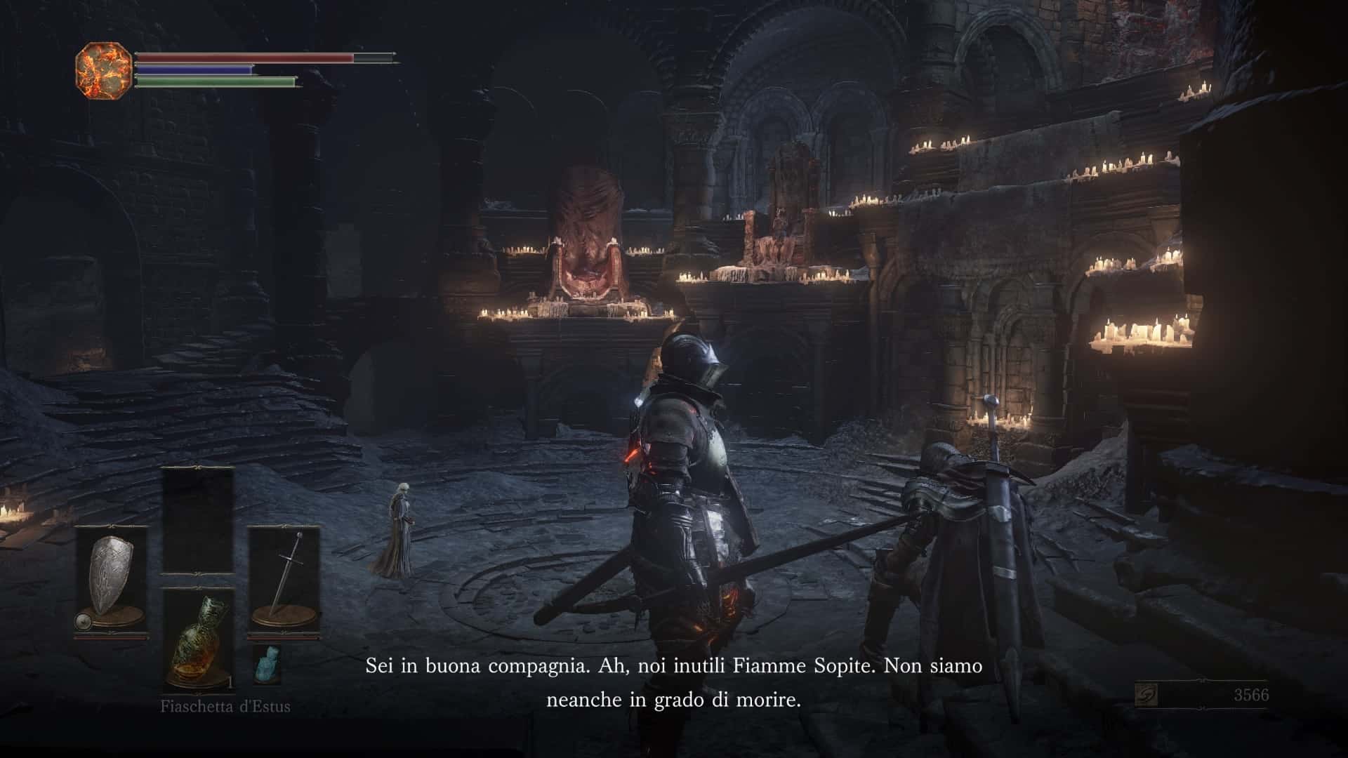 Dopo i primi 10 minuti di gioco circa, superata l’area-tutorial e sconfitto un primo boss, si arriva a quello che sarà il vostro hub per il resto della partita. Come in ogni titolo del franchise (eccetto Dark Souls 1) è qui che dovete andare per salire di livello. Ma non solo: quasi tutti i mercanti e alcuni NPC con cui è possibile dialogare, una volta incontrati nei livelli di gioco, si trasferiranno in modo permanente o temporaneo nell’hub, dove vivranno anche delle loro sotto-trame in parallelo all’avanzamento della partita – esattamente come avveniva in Demon’s Souls.