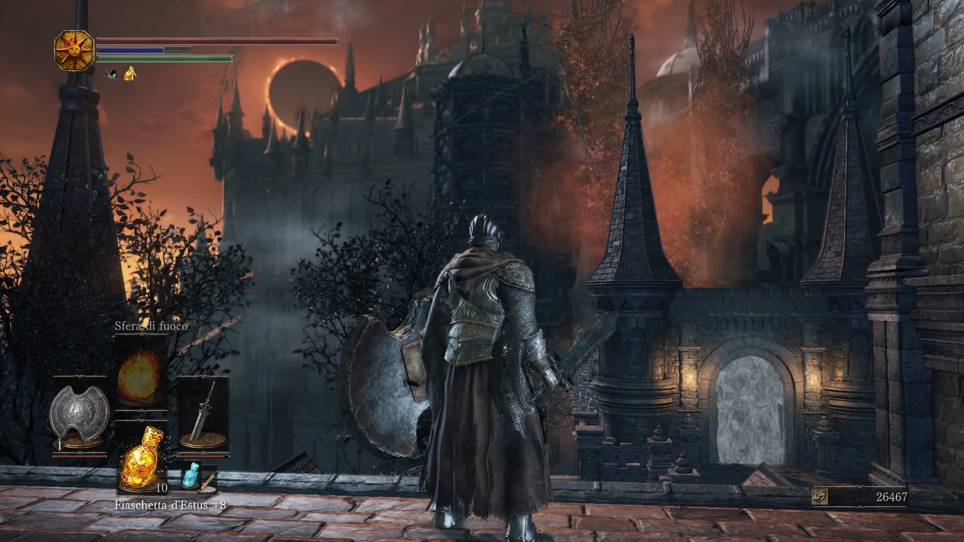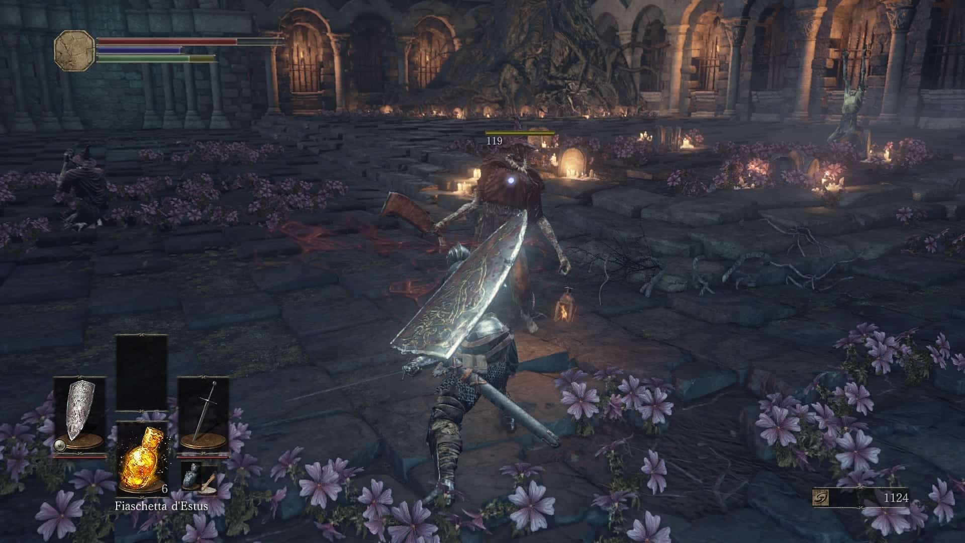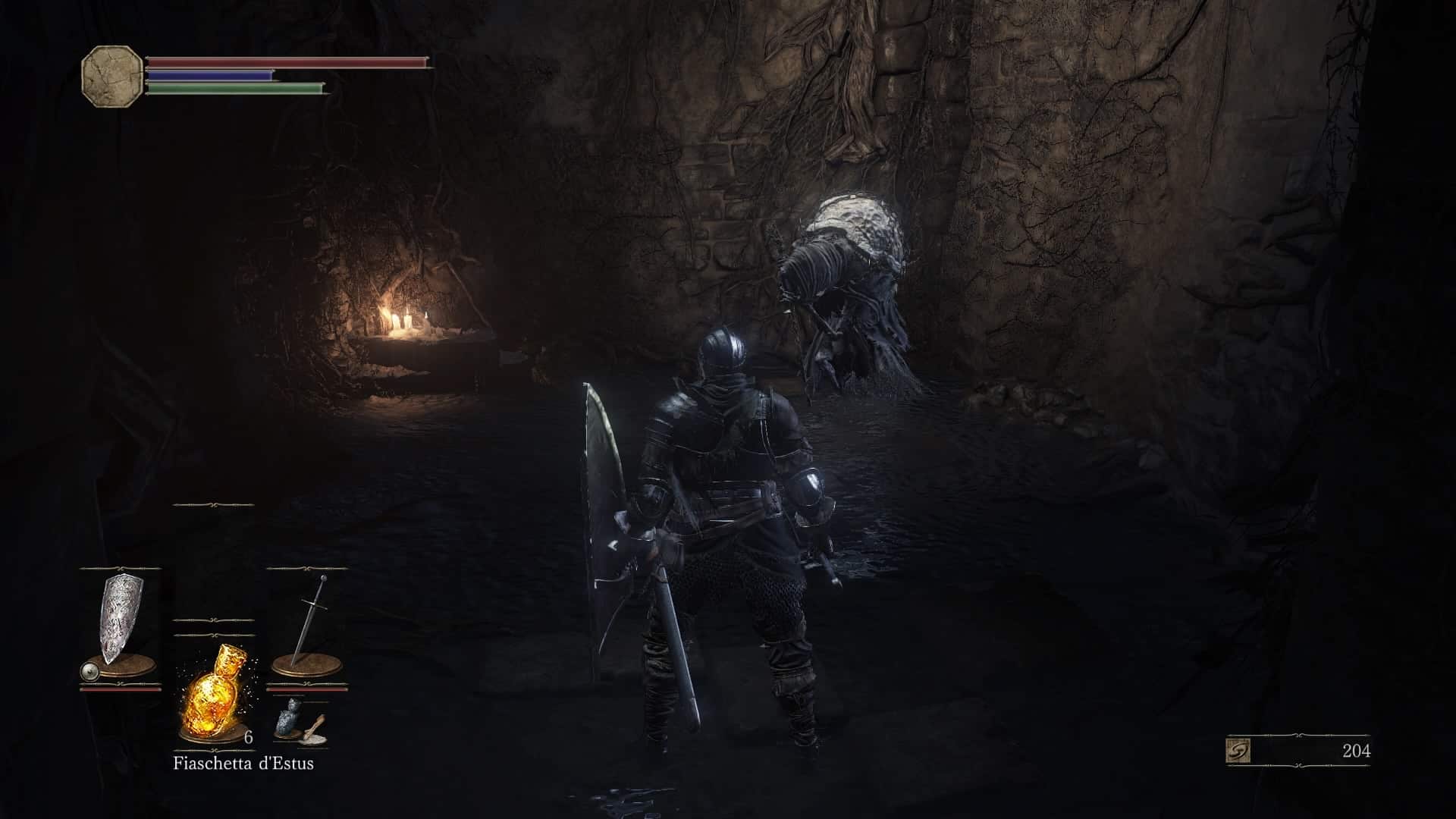 Di diverso, in Dark Souls III, c’è che ora le fiaschette Estus sono di due tipi distinti, uno che ripristina la salute e l’altro che ripristina il mana. Il numero totale di usi a disposizione è comunque invariato, e sta al giocatore distribuirlo (parlando con un NPC nell’hub) tra le due fiaschette. Questo significa, ad esempio, che avendo a disposizione un totale di 8 usi dell’Estus, con un personaggio principalmente combattente se ne potrebbero assegnare 7 al ripristino della salute e 1 solo al mana (o addirittura tutti e 8 alla salute), mentre con un personaggio principalmente mago si dovrebbe cercare un maggiore equilibrio, o addirittura un sacrificio della salute a vantaggio del lancio di incantesimi.