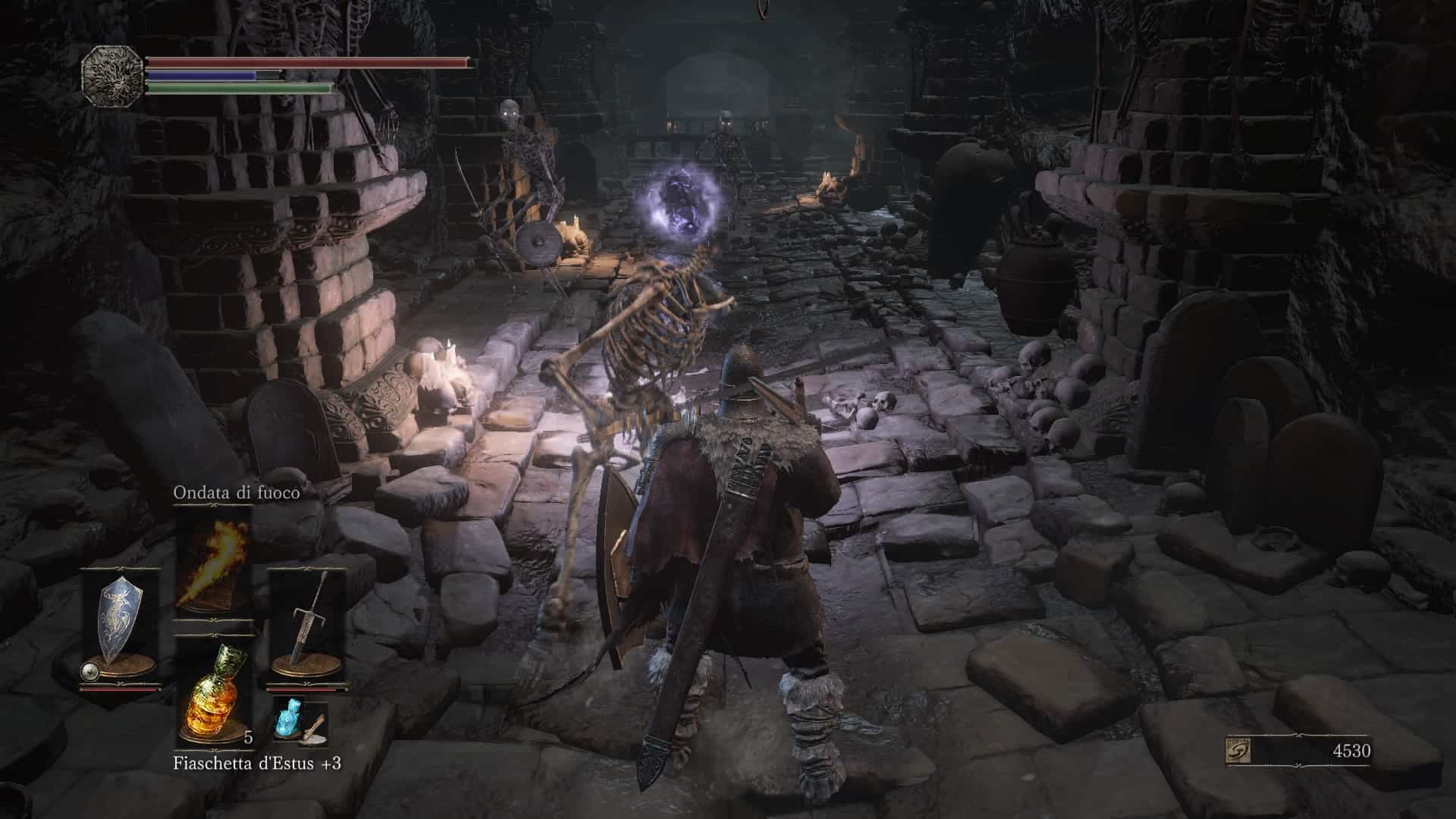 I fondamentali di Dark Souls III sono esattamente quelli che vi aspettereste avendo giocato i precedenti titoli di From Software: ci si muove in un mondo abbastanza binarizzato uccidendo nemici per raccogliere anime (punti esperienza), trovando oggetti di varia natura (armi, armature, consumabili, chiavi ecc.) e accendendo dei falò, che fungono da punto di “ripristino” (curando il personaggio, ma respawnando anche tutti i nemici comuni già uccisi), da checkpoint e da viaggio rapido. Avanzando lungo le varie strade possibili si arriva, prima o poi, ad affrontare un boss, che una volta ucciso permette di proseguire oltre nell’avventura o funge semplicemente da sfida conclusiva della zona.