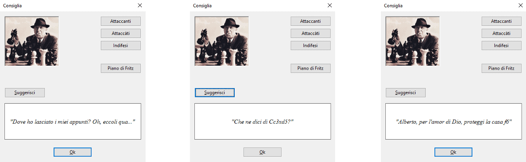 Con lo stesso principio, Fritz ci avviserà quando, secondo lui, avremo fatto una mossa davvero buona fra le tante disponibili, così come ci riprenderà quando faremo mosse veramente sbagliate.