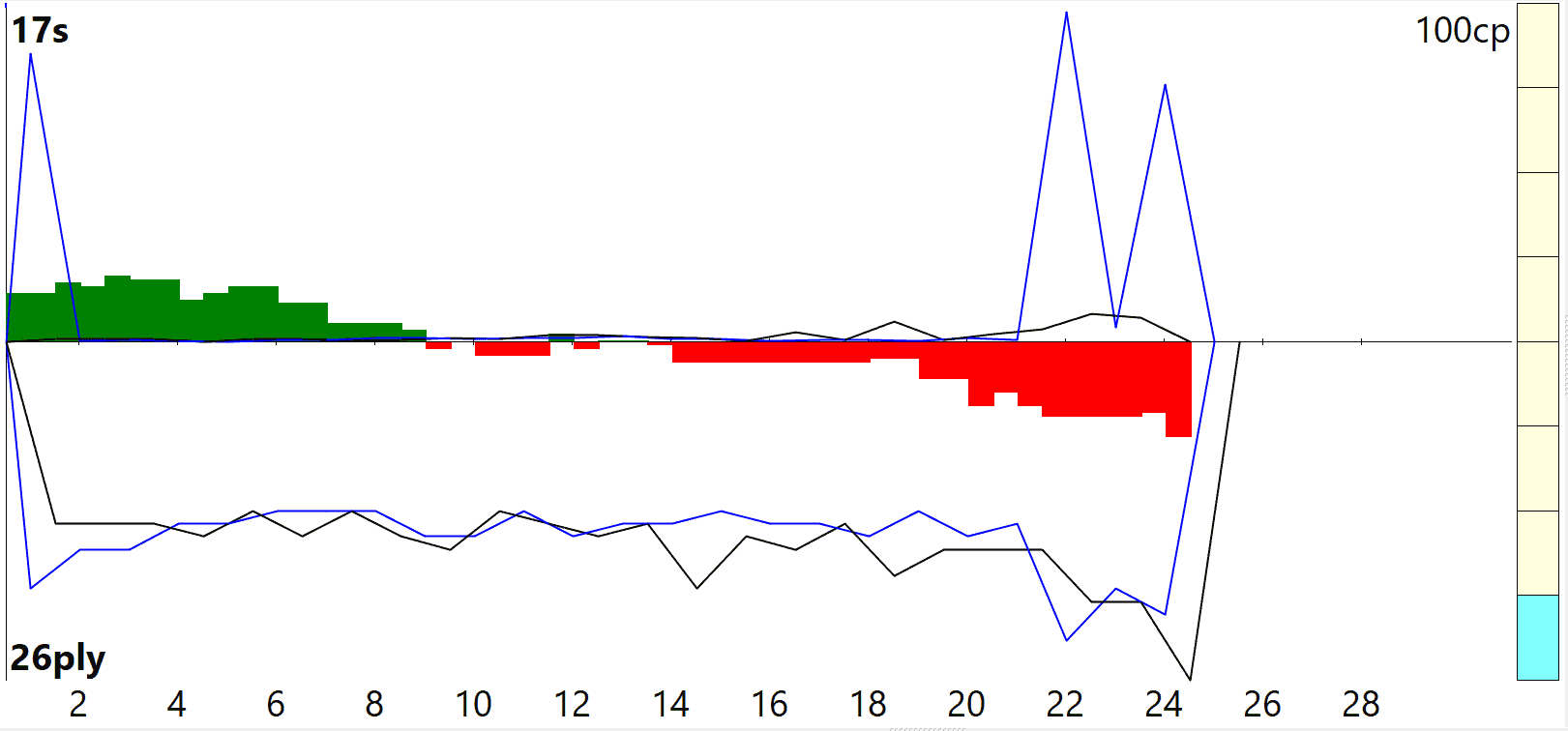 Inoltre, sullo stesso grafico, è visibile tramite linee colorate diversamente per ciascun giocatore il tempo richiesto per ogni mossa.