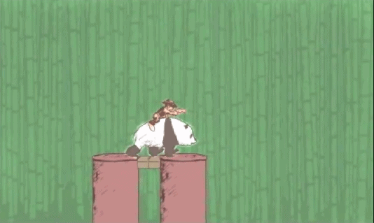 - Non si vede qui, ma il vostro tenero panda è inseguito da una lama circolare gigante!