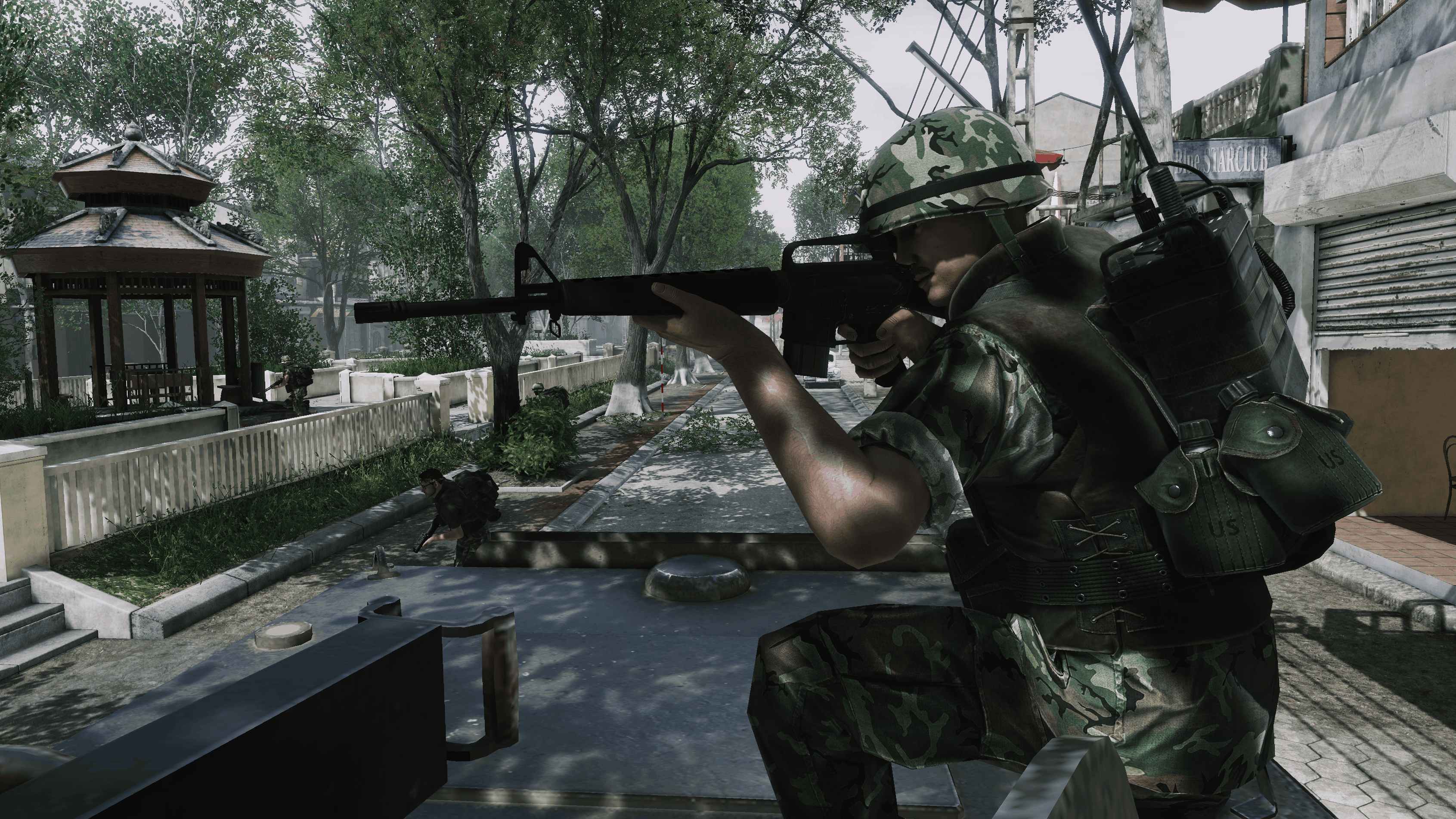 Già solo avviando il gioco, si viene istantaneamente catapultati all’inizio degli anni ’70, con i Creedence Clearwater Revival che cantano “Run Through The Jungle”, aspra critica al conflitto in corso. Dal menù è possibile scegliere un server per iniziare subito a giocare una partita, avviare un tutorial qualora si vogliano apprendere le basi militari del gioco (caldamente consigliato), oppure visionare le proprie statistiche e l’aspetto del nostro personaggio. Una delle novità di questo sequel è appunto la possibilità di sbloccare, salendo di livello, componenti e modifiche estetiche da poter applicare al nostro alter-ego militare, da elmetti e divise fino a tatuaggi e capigliature. Le armi, al contrario, saranno tutte disponibili fin da subito, così da permettere a tutti i giocatori di prendere confidenza con l’intero l’arsenale che il titolo ha da offrire senza limiti. Arsenale che consta di più di 30 armi storicamente autentiche che variano dal classico fucile automatico M16, al mitragliatore pesante M60; dal Type 56 (copia cinese del sovietico AK-47) al lanciarazzi RPG-7. Per la prima volta nel franchise sono stati inoltre inseriti dei mezzi di trasporto, ovvero ben 3 elicotteri: l’UH-1H “Huey” per il trasporto truppe, l’OH-6 “Loach” per la ricognizione e il mitragliamento, e infine il possente elicottero d’assalto AH-1G “Cobra”, una vera e propria fortezza volante. Non è escluso che possano arrivare anche mezzi corazzati di terra, chissà.