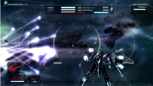 Il gameplay, esclusivamente single-player (cosa decisamente negativa, poichè si presterebbe molto bene ad una modalità multiplayer, come nel vecchio X-Wing Alliance della Lucasart) e dai tratti un po’ arcade, si presenta molto essenziale per essere un simulatore di volo, cosi come l’HUD, poiché le uniche informazioni presenti nella schermata sono l’indicatore dei missili e del cannone al plasma con rispettivo contatore delle munizioni, la visuale di indicazione del bersaglio nemico selezionato (mine, caccia, incrociatori, ecc. ecc.), la barra della salute, degli scudi e dei propulsori, indicatore del flusso (è quell’energia che permetta l’attivazione della Strike Suite). La mancanza della minimappa si fa sentire, poiché nel mezzo delle battaglie è molto difficile orientarsi senza il supporto di quest’ultima. Nota a favore è la possibilità di alternare in qualsiasi momento la visuale in prima e terza persona. Degna di attenzione è la parte che riguarda la personalizzazione dell’armamentario e il buon numero di armi a disposizione, per adottare sempre nuovi modi di portare a termine l’obbiettivo assegnatoci.