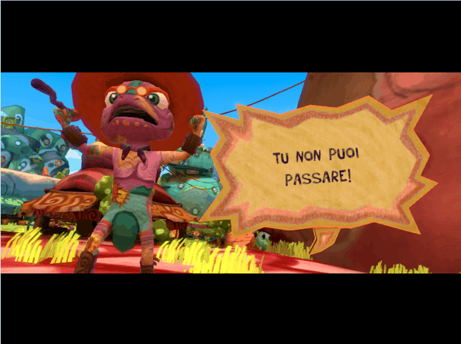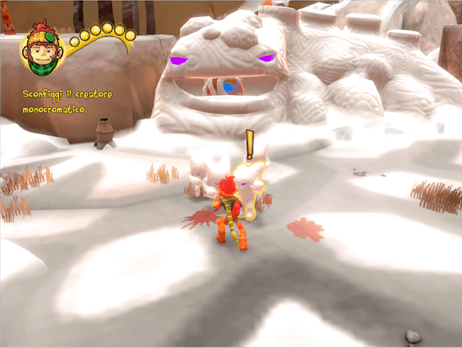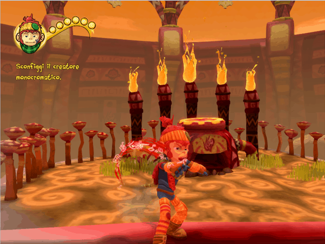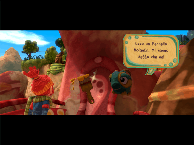 Niente di notevole, giusto? Sbagliato! Procedendo con l’avventura infatti si acquisiscono nuove abilità legate ai tre colori, che ci permettono di tirare dei cazzotti decisamente più potenti (ma che fanno anche infuriare gli avversari), dei ganci in grado di far fuggire a gambe levate i nemici (magari facendoli cadere giù da una piattaforma o facendogli urtare dei cactus irti di spine) o degli sganassoni ehm… deprimenti, che faranno piombare i cattivi in una tristezza così profonda da paralizzarli momentaneamente.