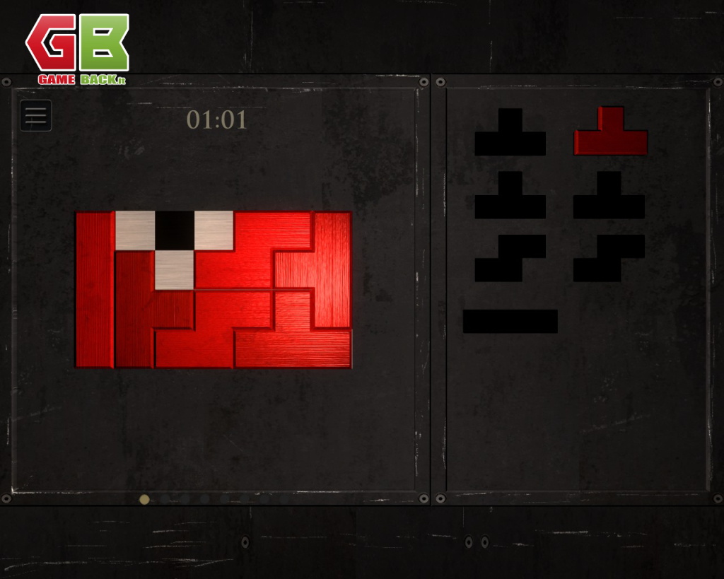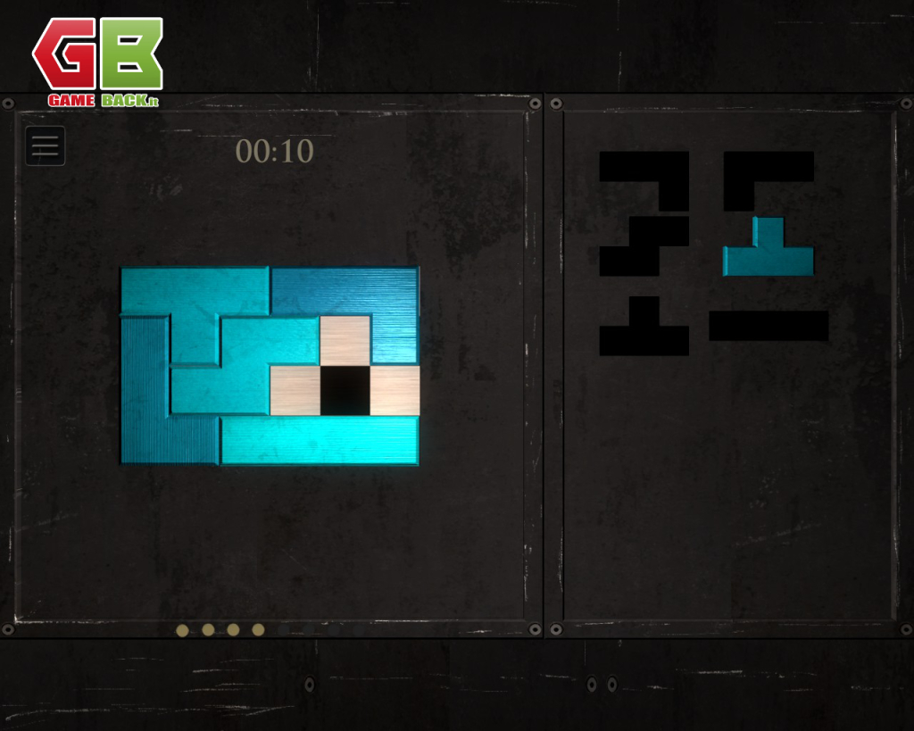 Visto che quando un livello è completo il gioco passa automaticamente a quello successivo, nelle immagini l’ultimo pezzo è sulla destra, ancora da piazzare, ovviamente nell’unico buco vuoto rimasto dello schema.