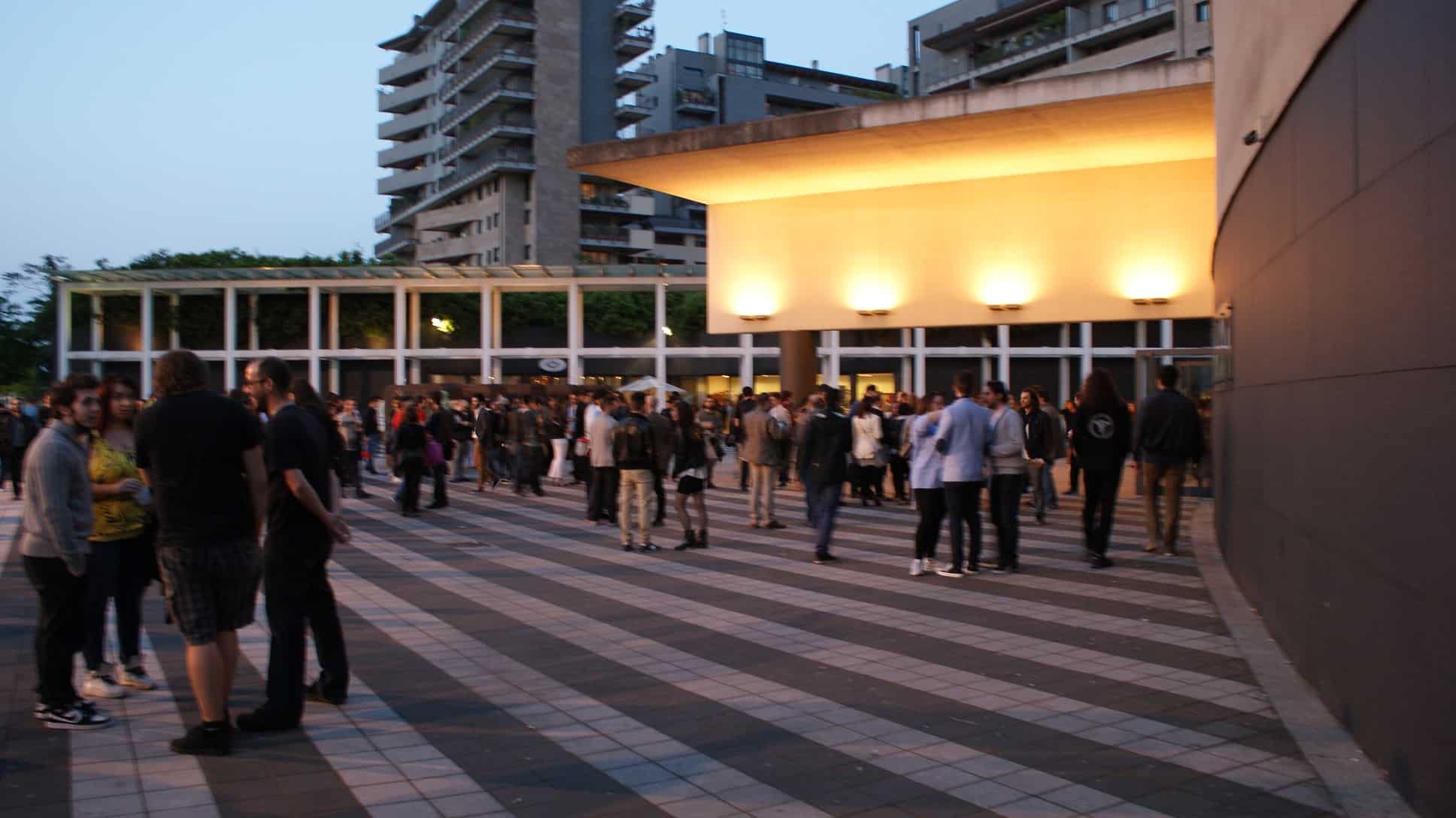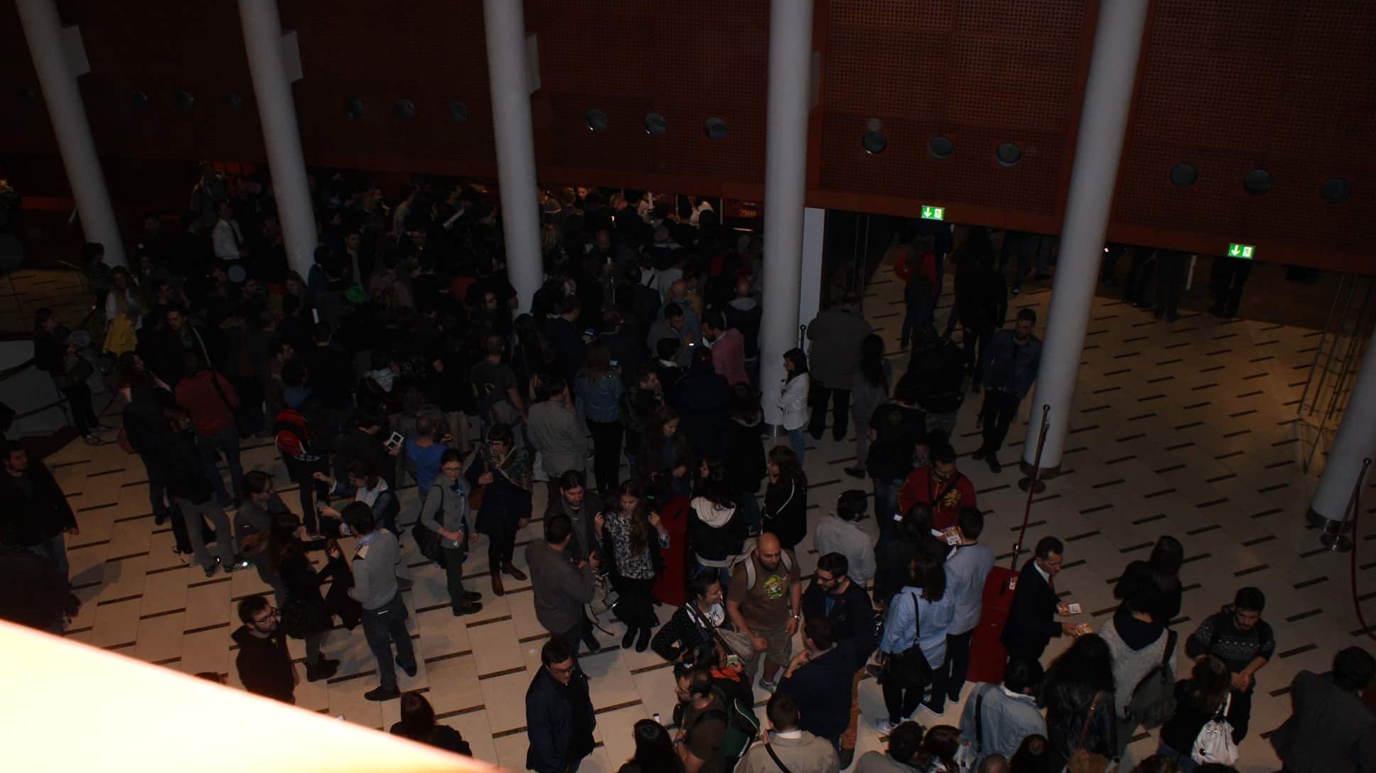 La piazza subito davanti è già animata, con colleghi videogiocatori che stringono nuove amicizie e chiacchierano tra loro.
