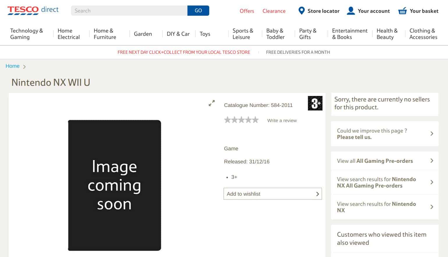 I leak e i rumour riguardanti Nintendo NX si sono particolarmente intensificati negli ultimi tempi. Vedremo la console a breve? Quello che sappiamo per ora è che Tesco, una nota catena UK, ha creato una pagina prodotto dal contenuto interessante.