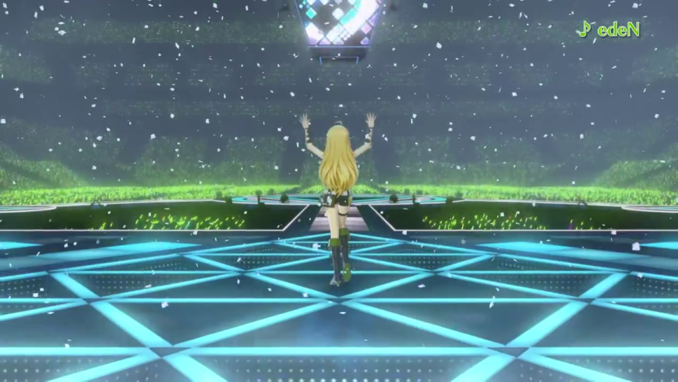 Nel secondo trailer invece assistiamo alla presentazione della biondissima Miki Hoshii che, oltre a parlarci del suo amore verso le angurie, ci canta anche edeN una delle canzoni storiche della serie introdotta per la prima volta in Shiny Festa: Groovy Tune.